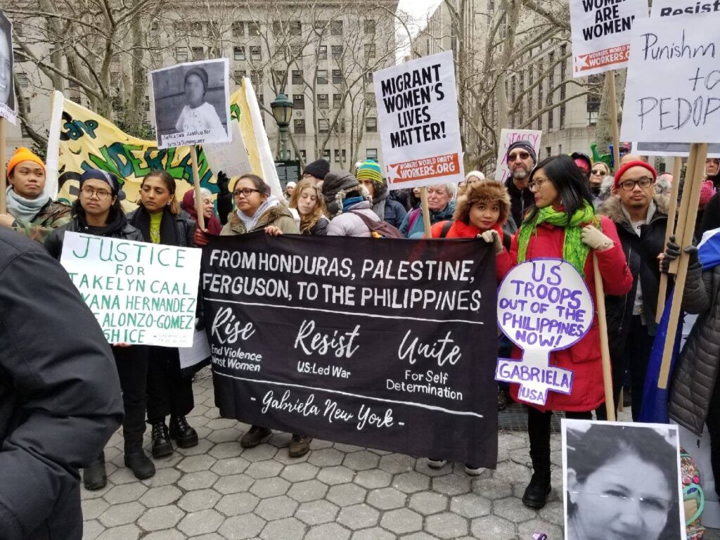 On the other hand, the Women’s Unity Rally in Foley Square worked with the national organizers under attack as well as the New York Immigration Coalition and a range of labor and social justice groups. The Foley Square march also included a Jewish contingent that included Jewish Voice for Peace and a Jews of Color bloc, as well as Gabriela New York, the Filipina women’s movement organization.