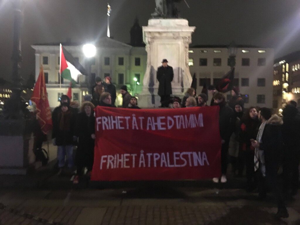 The international Samidoun Palestinian Prisoner Solidarity Network salutes our comrades in Gothenburg, Sweden on one year of organizing together as a collective for the liberation of Palestinian prisoners – and the liberation of Palestine. We urge all to visit the Samidoun Gothenburg website in Swedish and read the Swedish original statement: https://samidoun.net/sweden/ett-ar-av-fangsolidaritet/