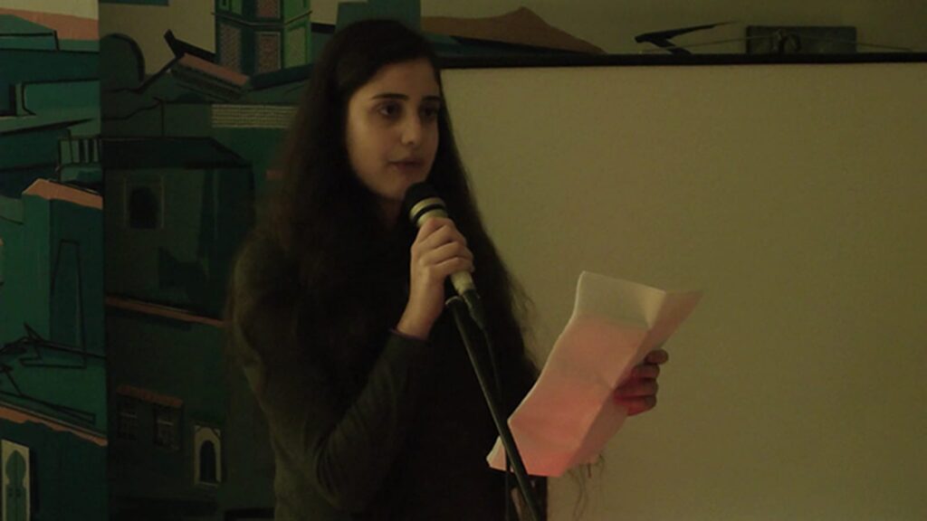 The moderator of the evening opened the event with a stirring call against the silencing of oppressed and marginalized people, especially Palestinian women. She noted the growing support received by the event and the campaign to defend Odeh by a number of organizations, including the Internationale Liga für Menschenrechte, which sent a statement to the organization. The event was supported by Samidoun Palestinian Prisoner Solidarity Network, Berlin Muslim Feminists, Bündnis gegen Rassismus, HIRAK (Palestinian Youth Mobilization, Berlin), The Coalition Berlin, Bloque Latinoamericano Berlin, Brot und Rosen international socialist women’s organiation, Revolutionäre Internationalistische Organisation – Klasse Gegen Klasse, Berlin Against Pinkwashing, Jüdische Stimme für gerechten Frieden in Nahost (Jewish Voice for a Just Peace), RefrACTa Kollektiv Brasilien-Berlin, BDS Berlin and the Kali feminist collective.