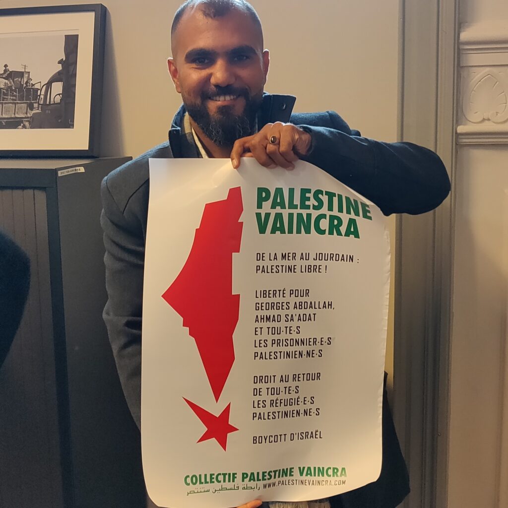 Suppporting the Belgian campaign, activists intervened from Lannemezan to Toulouse, from Amsterdam to Geneva, from Berlin to Lebanon – people and organizations mobilized for Mustapha. (7) The Samidoun site followed developments in the campaign, as did articles by Ali Abunimah and David Cronin at the Electronic Intifada. Amira Hass in Ha’aretz described how Israeli security tried to prevent Mustapha’s early release. Around 100 international organizations signed the petition demanding his release. Salah Hamouri, former prisoner and Franco-Palestinian lawyer, also showed his solidarity with Mustapha.