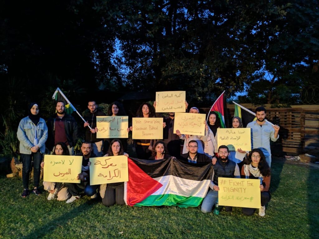 “We, a group of Palestinian youth from the diaspora and occupied Palestine in South Africa, are part of a youth delegation. We call out to support the resistance of the prisoners with their empty stomachs, who represent the front line and the vanguard of the struggle with the Zionist oppressor. With their iron will, the prisoners’ movement in the Zionist prisons declares a new battle of heroic struggle, this time against the “jammers,” as part of their continuous struggle to win their freedom and confront the policies of isolation.