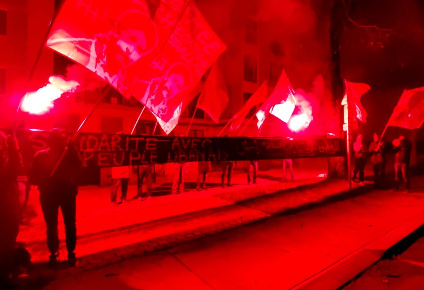 In Brussels, Secours Rouge organized a protest on 19 January outside the Lebanese Embassy to Belgium, highlighting the call for a day of action to free Sa’adat and Georges Ibrahim Abdallah, the Lebanese Arab Communist struggler imprisoned for 35 years in French prisons. Dozens of people joined in the protest, which also expressed solidarity with the popular protest movement in Lebanon.
