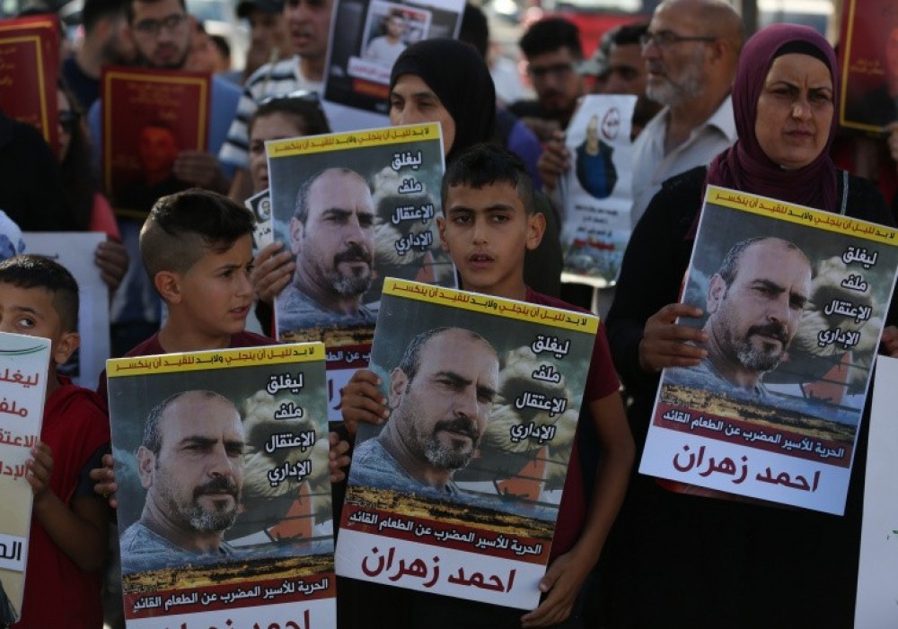 As Palestinian prisoner Ahmad Zahran prepares to enter his 103rd day of hunger strike, a growing number of Palestinian prisoners are on strike in solidarity with him to demand his freedom. Zahran, 42, from the village of Deir Abu Mishaal, is jailed without charge or trial under Israeli administrative detention. He previously conducted a 39-day hunger strike that ended with a promise for his release – but launched his current strike when, instead, his detention was renewed once more on 22 September 2019.