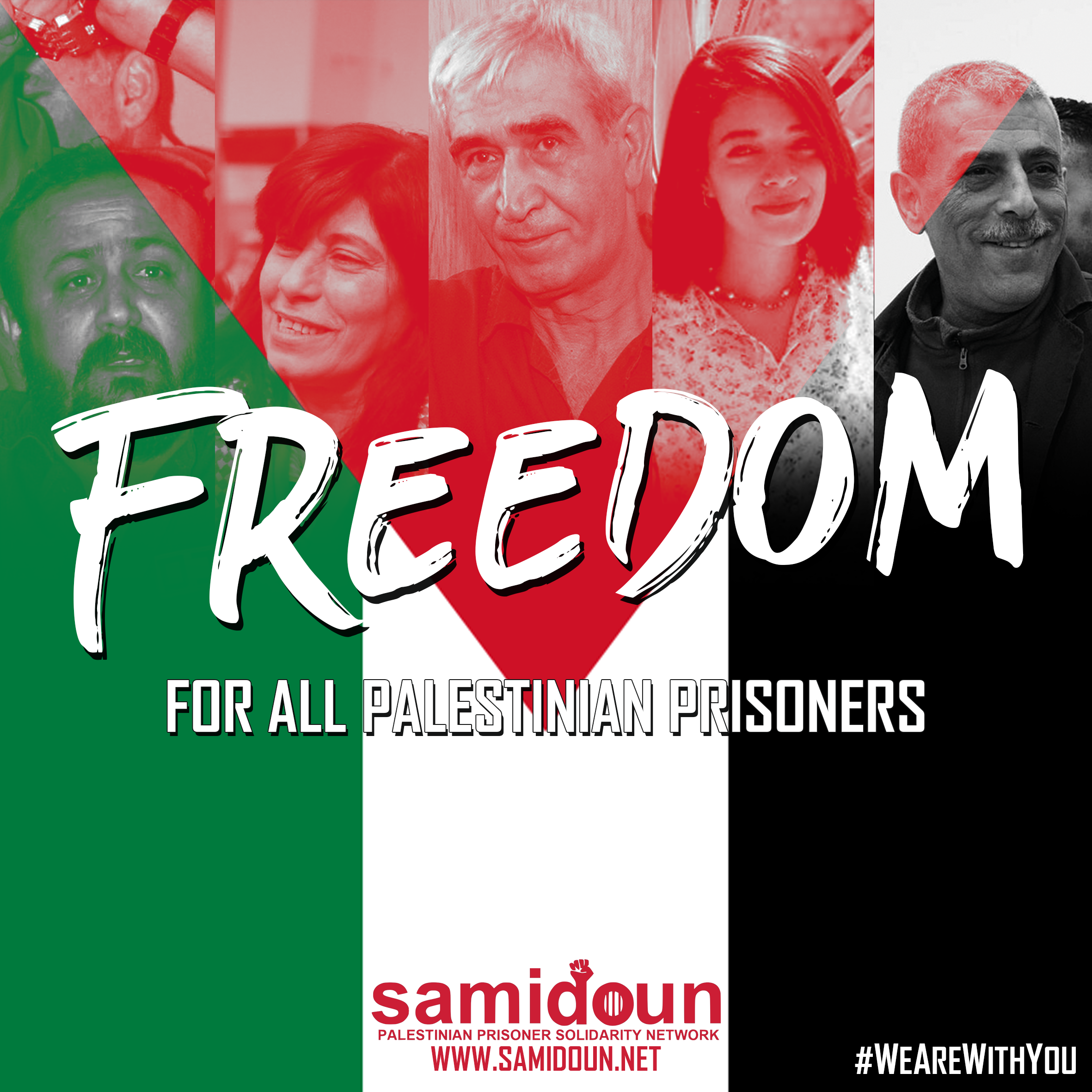 As part of the “You are not alone, We are with you” campaign, the hashtag throughout the day will be #WeAreWithYou. This twitterstorm will be joined by activists from throughout occupied Palestine and around the world, and we urge you to join us! Tweet your links, message of solidarity or video about the Palestinian prisoners at any time during the day and add the hashtag, #WeAreWithYou.