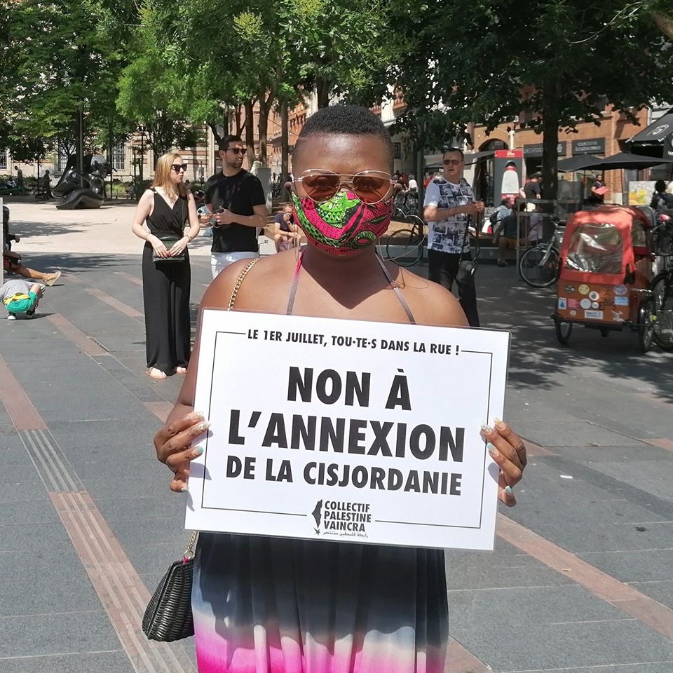 Many people also participated in a photo project as part of the stand, denouncing the annexation project in the West Bank announced by the Netanyahu/Gantz government of the Israeli occupation. A demonstration is also being organized in Toulouse for 1 July, part of the global day of action to stop Israeli annexation and defend the Palestinian people and Palestinian land.