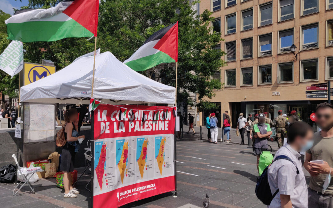 On Sunday, 20 June, the Collectif Palestine Vaincra organized a Palestine stand outside Metro Capitole in Toulouse, France, as part of its ongoing campaign to stop the “twinning” or “sister city” relationship between Toulouse and Tel Aviv. Collectif Palestine Vaincra is a member organization of the Samidoun Network.