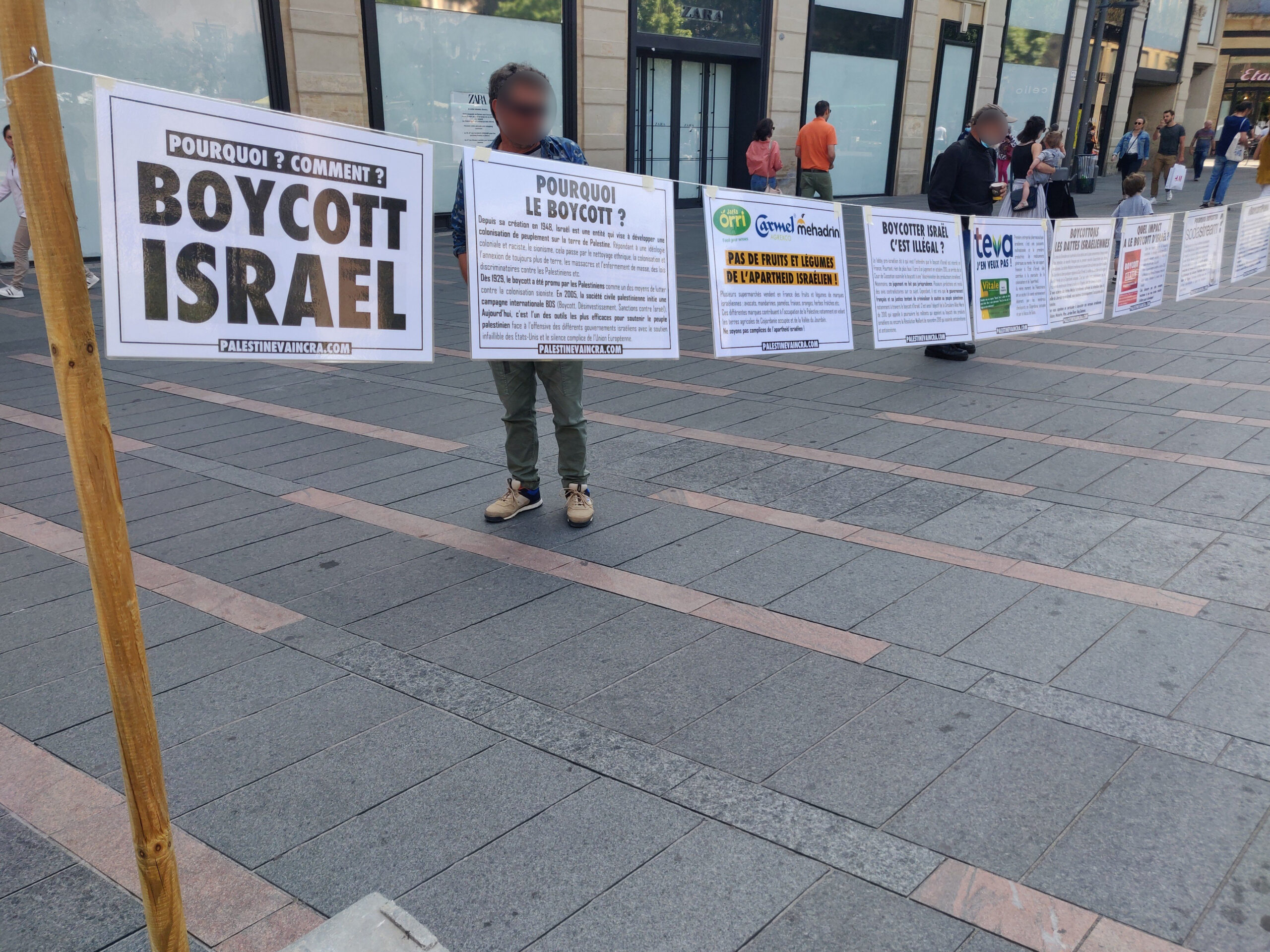 Activists invited city residents to sign the petition against the Toulouse-Tel Aviv twinning and distributing stickers and materials urging the boycott of Israel. Participants also distributed a thousand flyers and had many positive conversations with passers-by.