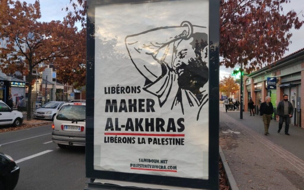 In Toulouse, France, the Collectif Palestine Vaincra organized an “ad hack” poster campaign to demand freedom for al-Akhras and documented many international actions, including protests in New York, Vancouver, Dublin, Cologne and elsewhere.