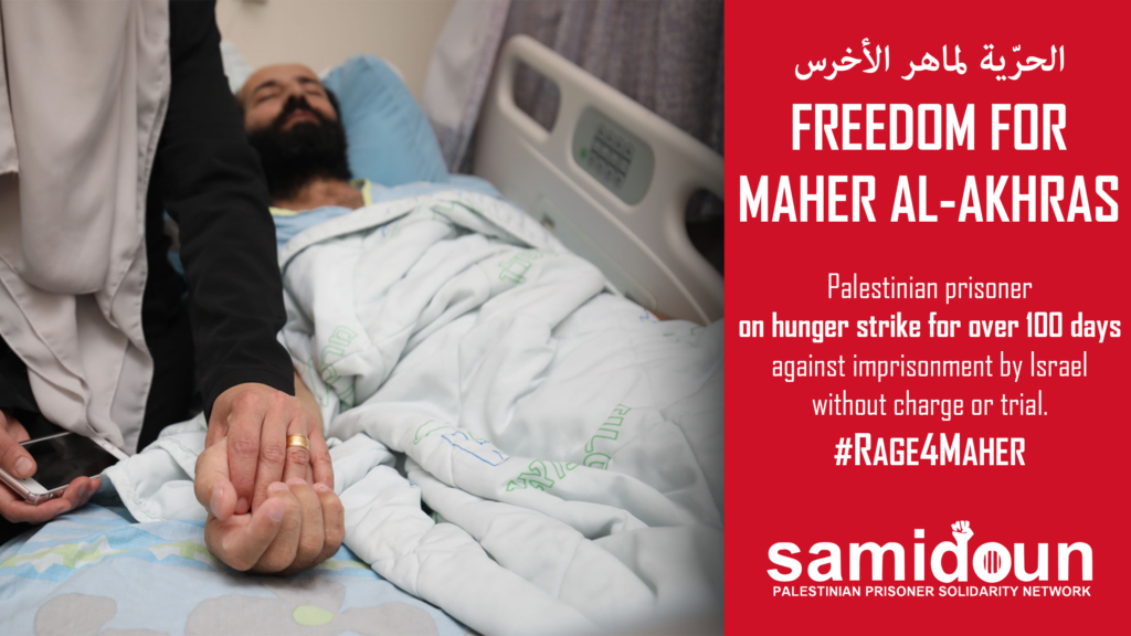 Read our update on Maher al-Akhras’ struggle for freedom here: https://samidoun.net/2020/11/100-days-of-hunger-strike-stand-with-maher-al-akhras-for-freedom-dignity-and-justice/