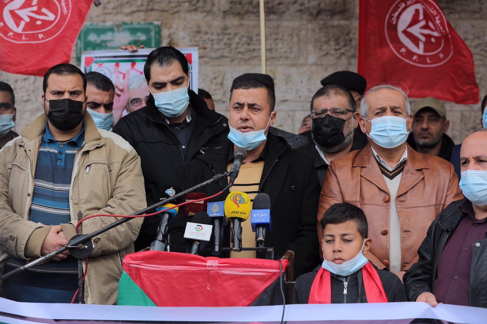 Protesters also emphasized the situation of the Palestinian prisoners in Israeli jails, noting that the prisoners’ movement is facing a policy of “slow death,” including the medical neglect of the prisoners’ health during the coronavirus pandemic and the denial of the vaccine to imprisoned Palestinians. They emphasized the need to fight back to defend the prisoners’ movement against this ongoing attack.
