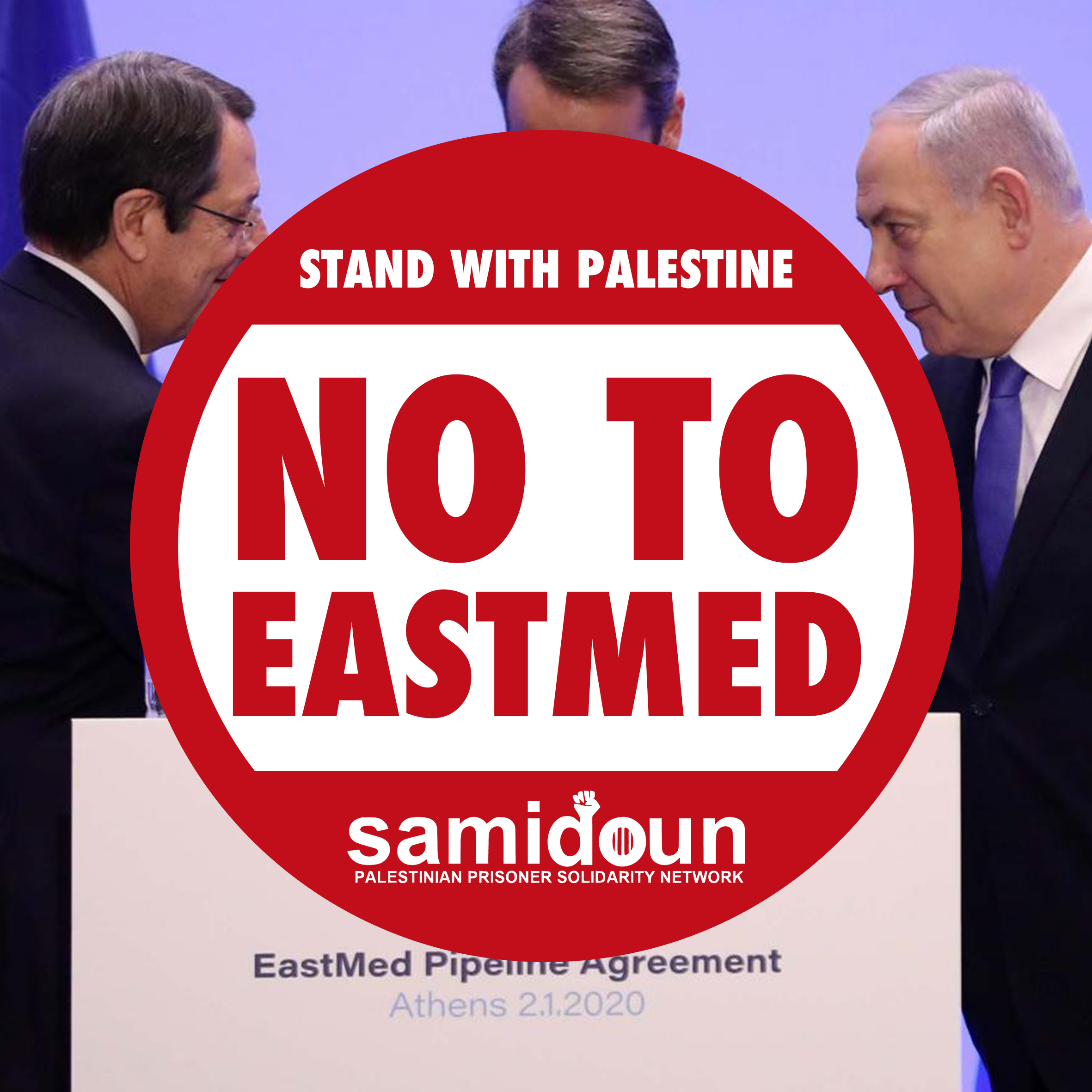 Samidoun Palestinian Prisoner Solidarity Network stands with all progressive forces around the world against imperialism, reaction and colonial oppression and exploitation. We therefore stand with the calls, Palestinian and international, to stop the EastMed pipeline, and just as we reject the theft of homes, of lands and of livelihoods and lives in Palestine, we reject the theft of fossil gas from the Palestinian peoples, and uphold the right of a liberated Palestinian people to democratically decide over the use of the resources in Palestine, from the river Jordan to the Mediterranean Sea.