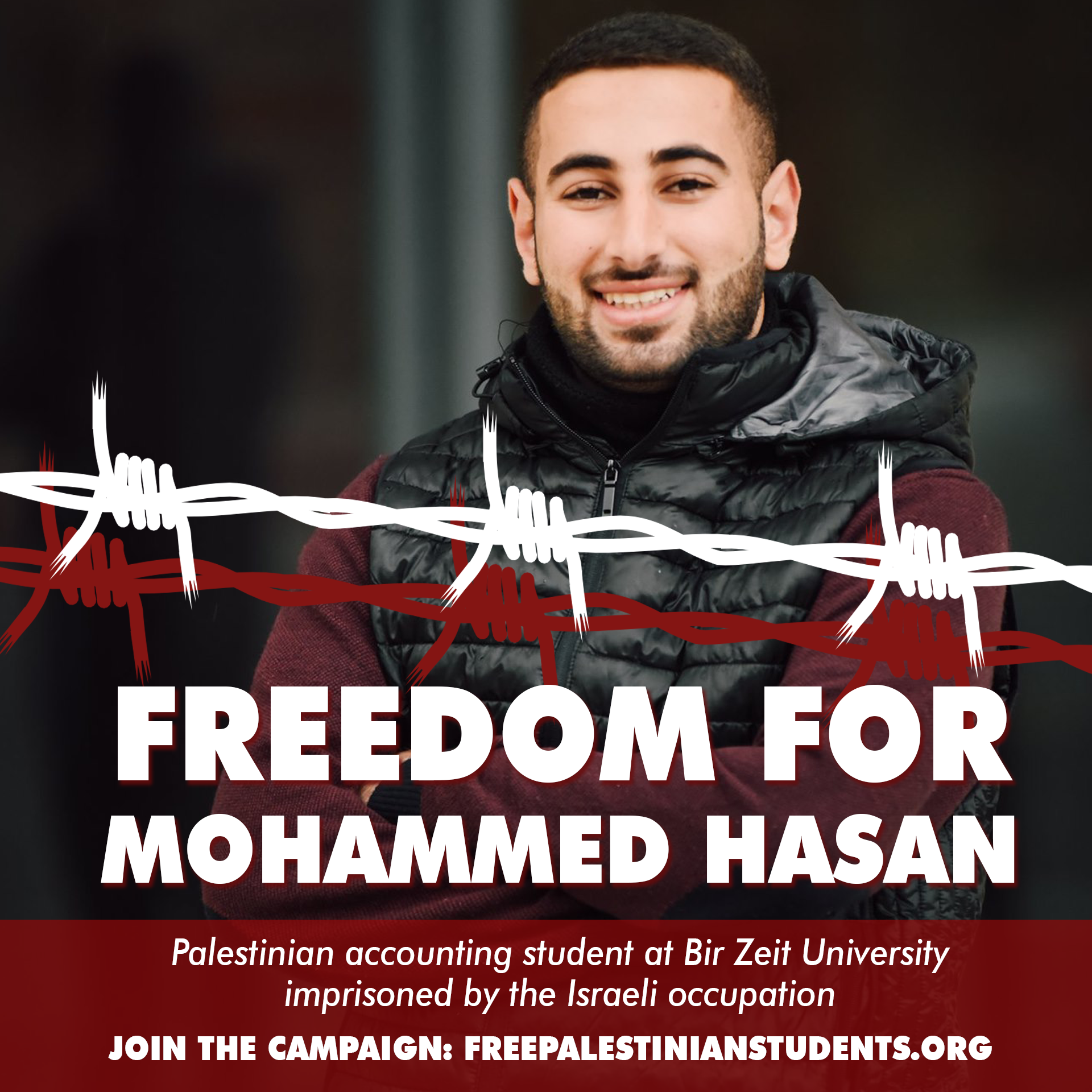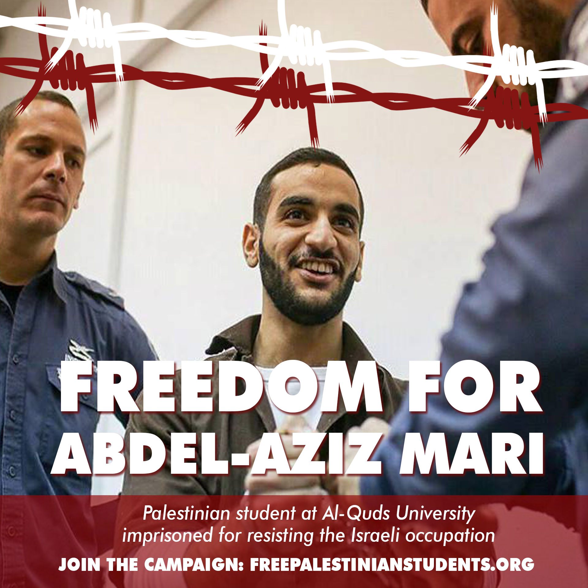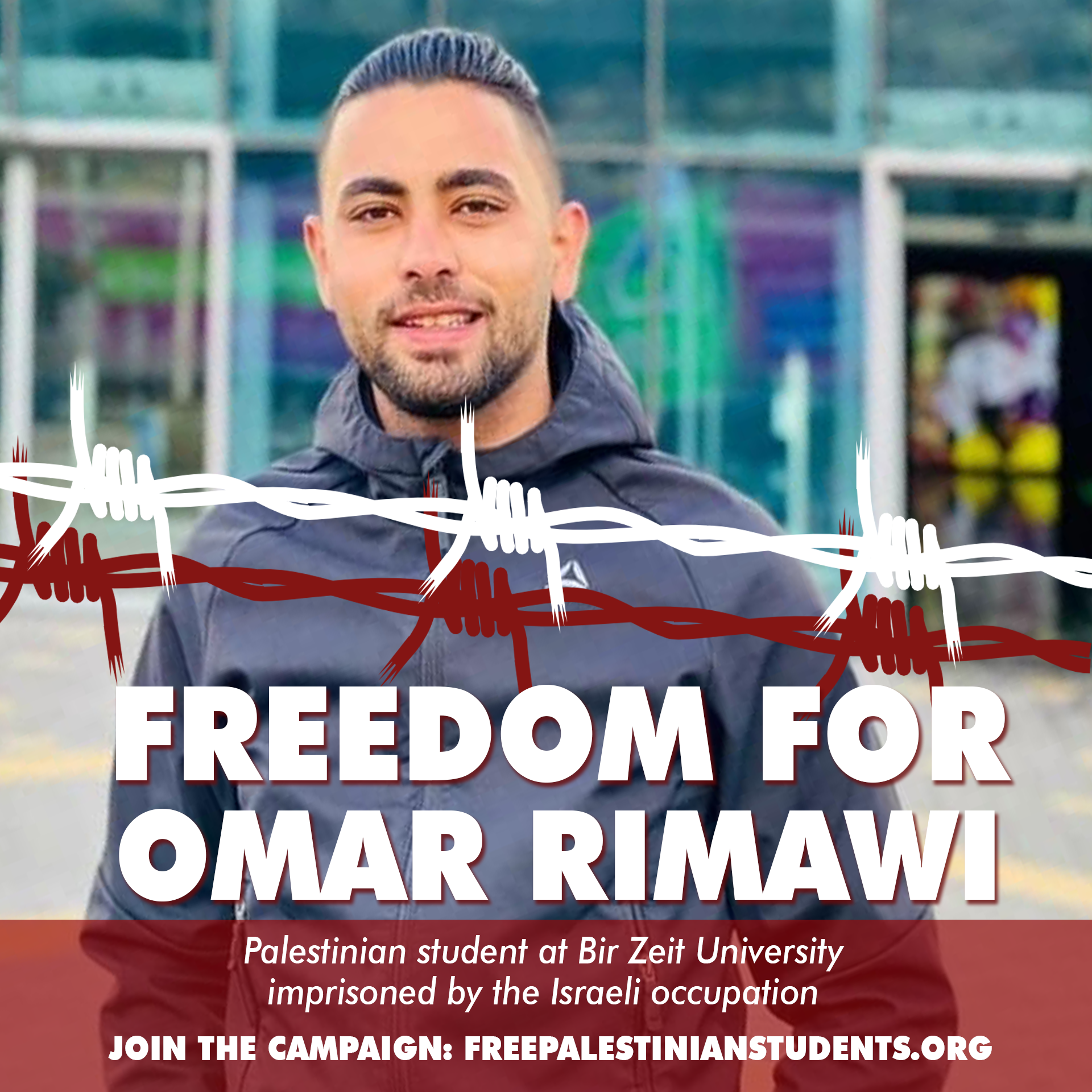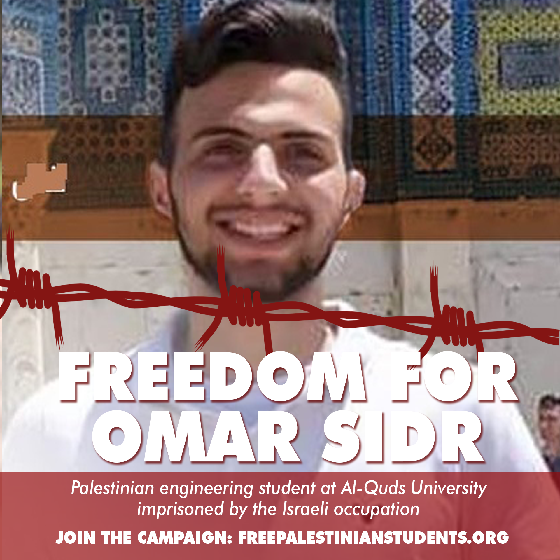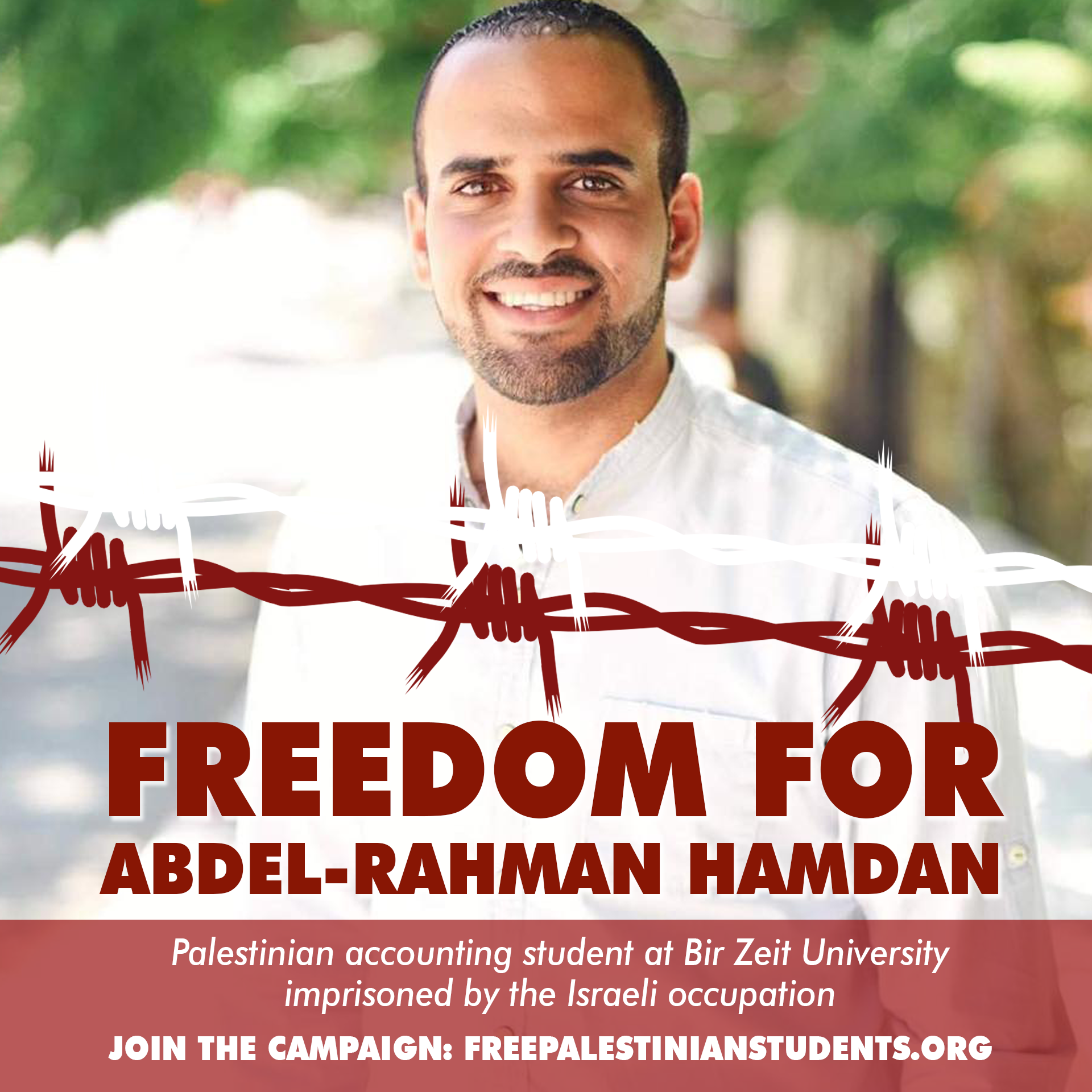 Vi, de undertecknade organisationerna, sluter samman våra röster i ett globalt upprop för fängslade palestinska studenters omedelbara frigivning och till försvar för palestinska studenters rätt till utbildning, till politiskt uttryck och engagemang och till att avgöra sin egen framtid. Den israeliska ockupation förföljer palestinska studenter och, i synnerhet, den palestinska studentrörelsen och palestinska studentorganisationer med sträng repression och politiskt fångenskap.