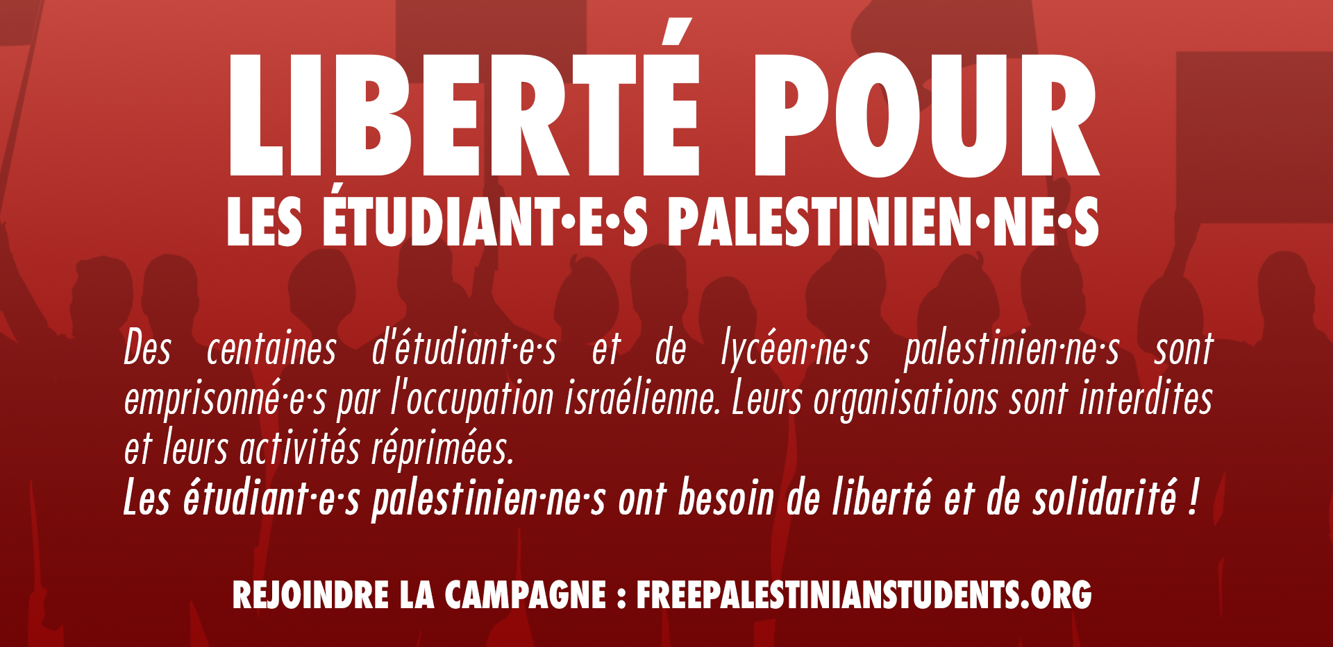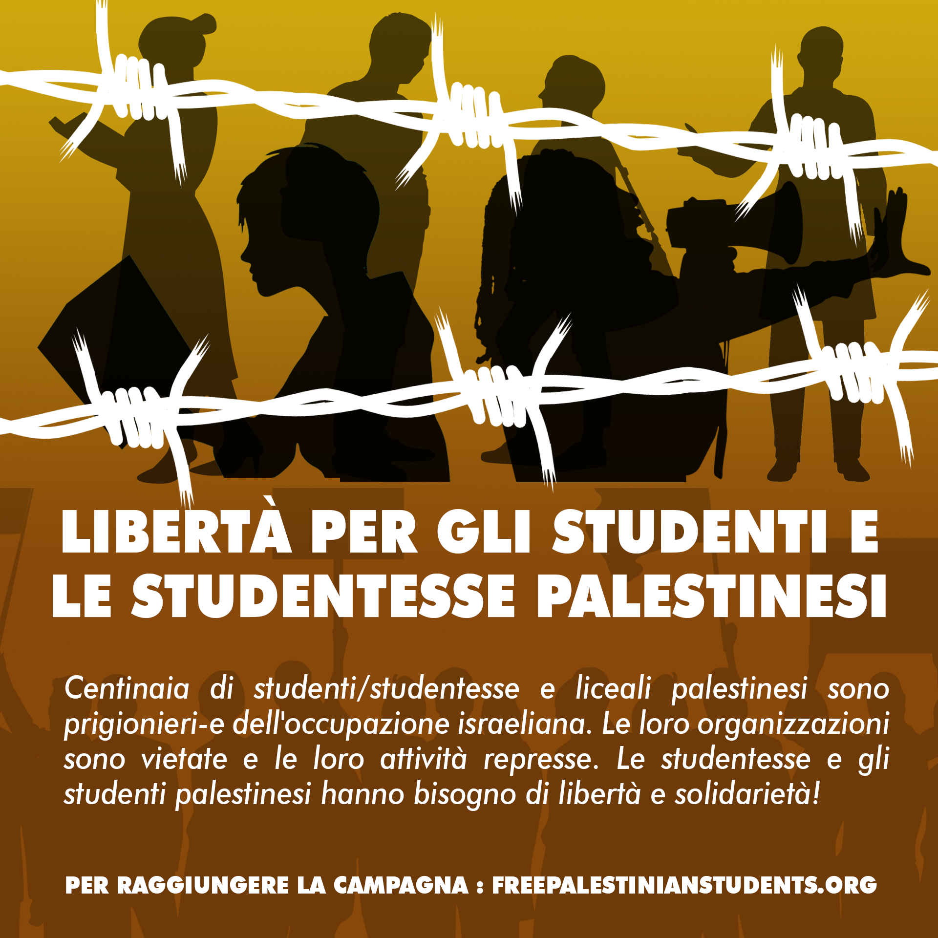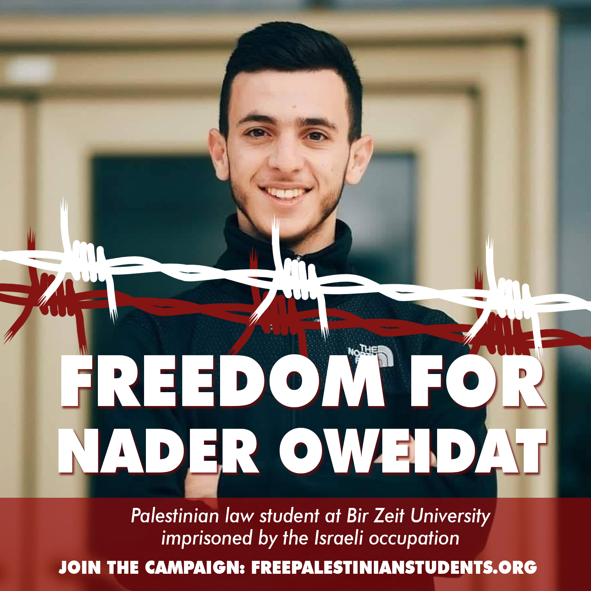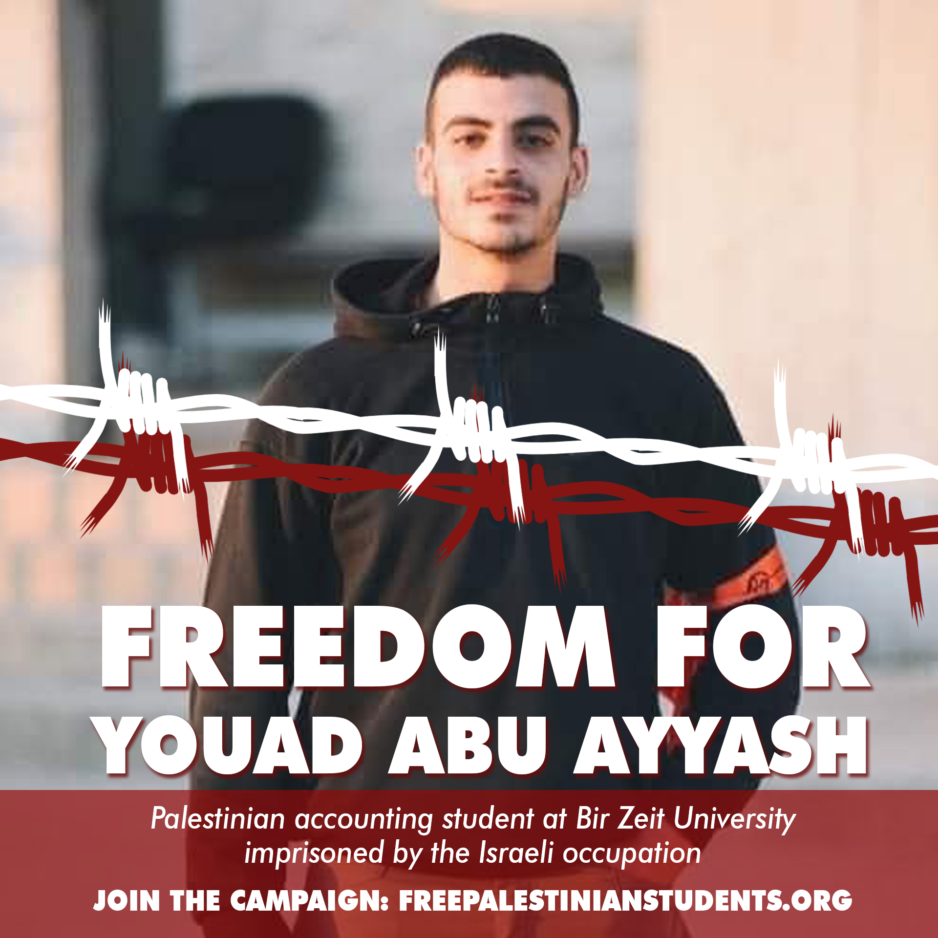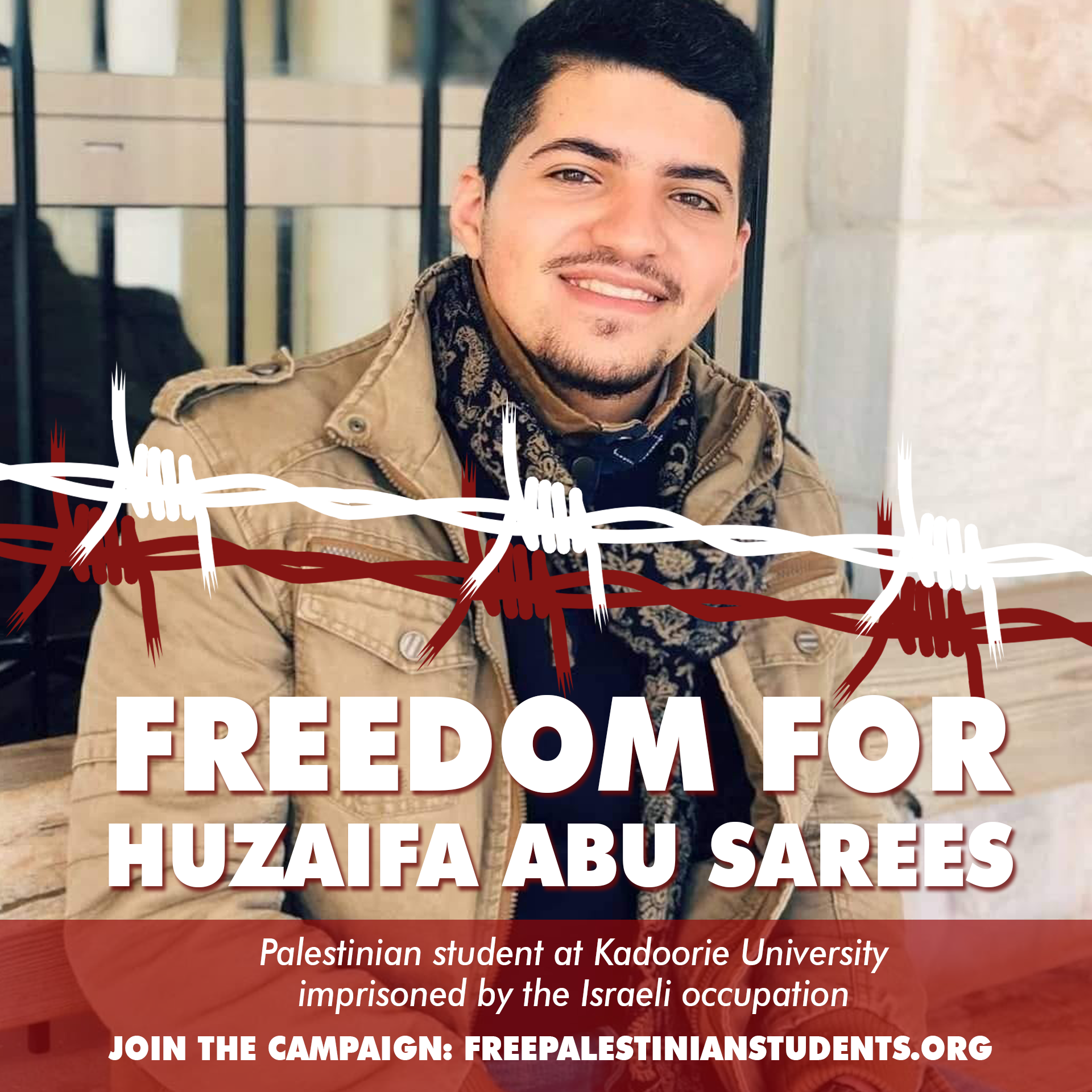 Vi, de undertecknade organisationerna, sluter samman våra röster i ett globalt upprop för fängslade palestinska studenters omedelbara frigivning och till försvar för palestinska studenters rätt till utbildning, till politiskt uttryck och engagemang och till att avgöra sin egen framtid. Den israeliska ockupation förföljer palestinska studenter och, i synnerhet, den palestinska studentrörelsen och palestinska studentorganisationer med sträng repression och politiskt fångenskap.