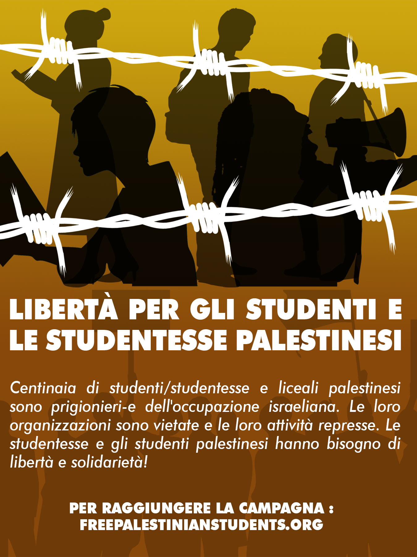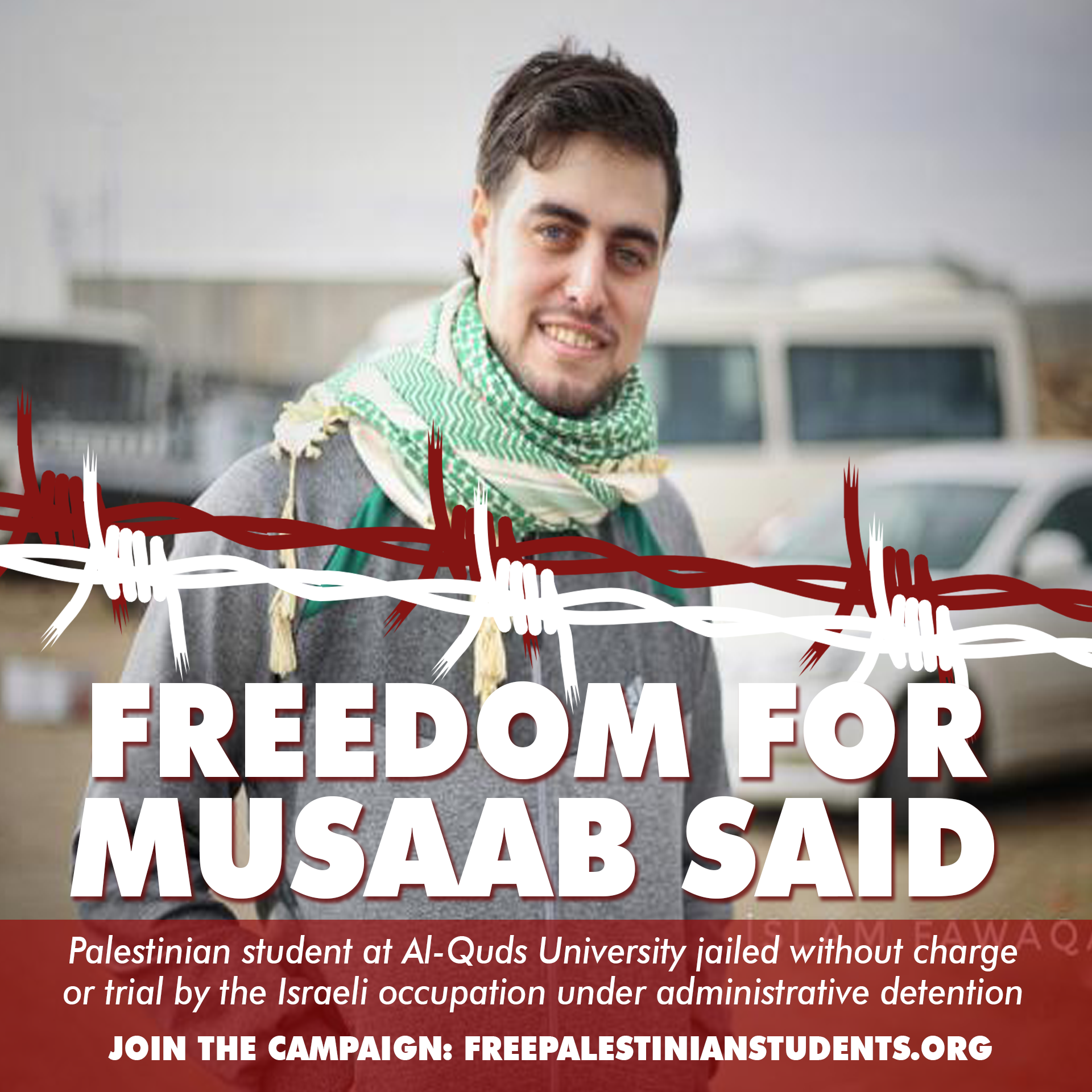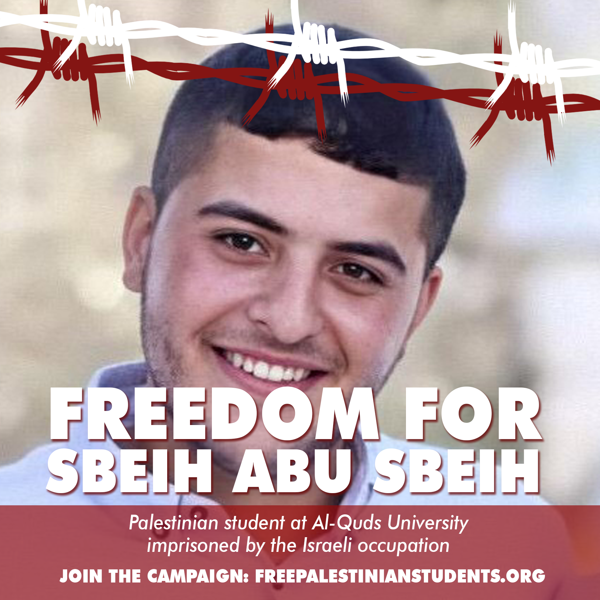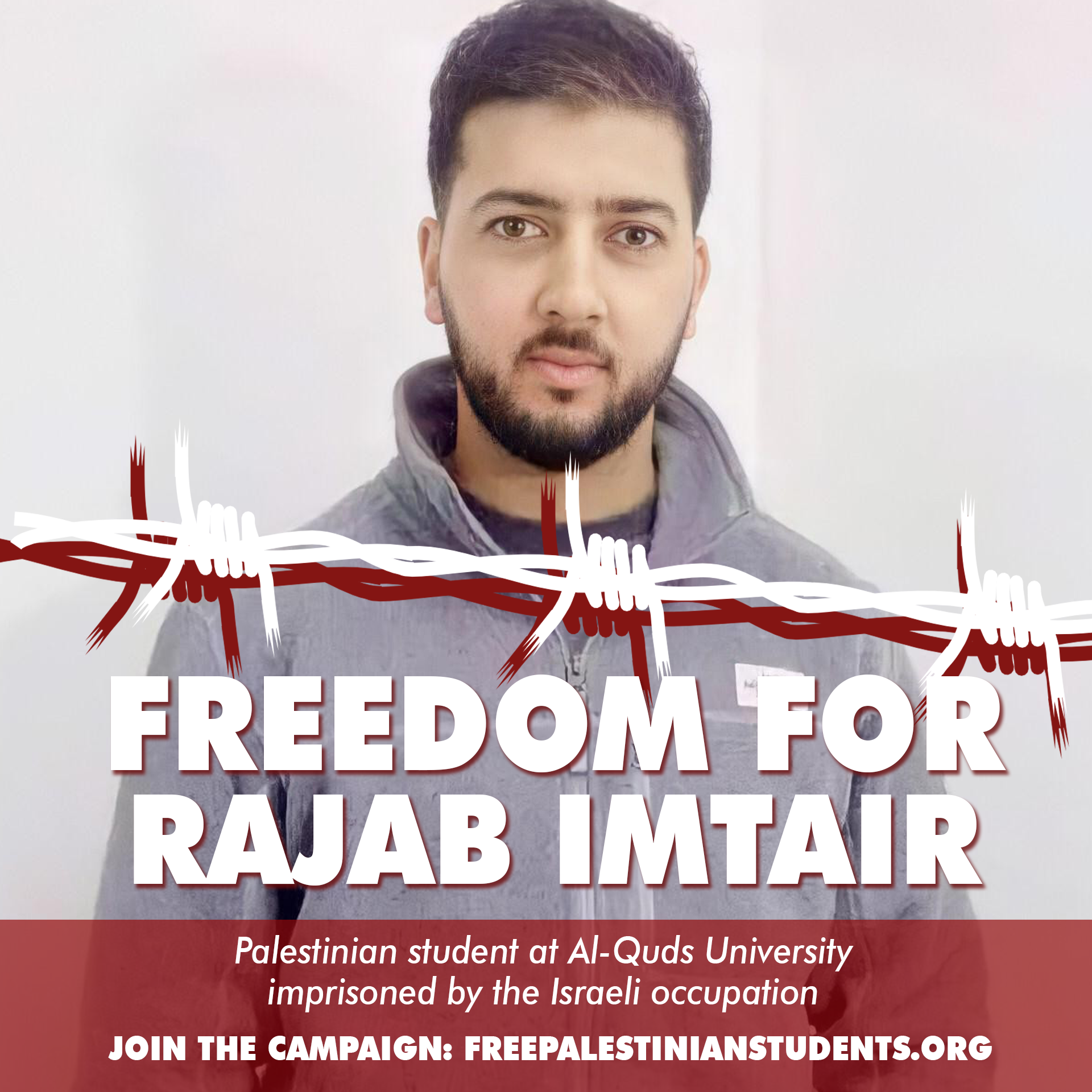 Vi, de undertecknade organisationerna, sluter samman våra röster i ett globalt upprop för fängslade palestinska studenters omedelbara frigivning och till försvar för palestinska studenters rätt till utbildning, till politiskt uttryck och engagemang och till att avgöra sin egen framtid. Den israeliska ockupation förföljer palestinska studenter och, i synnerhet, den palestinska studentrörelsen och palestinska studentorganisationer med sträng repression och politiskt fångenskap.