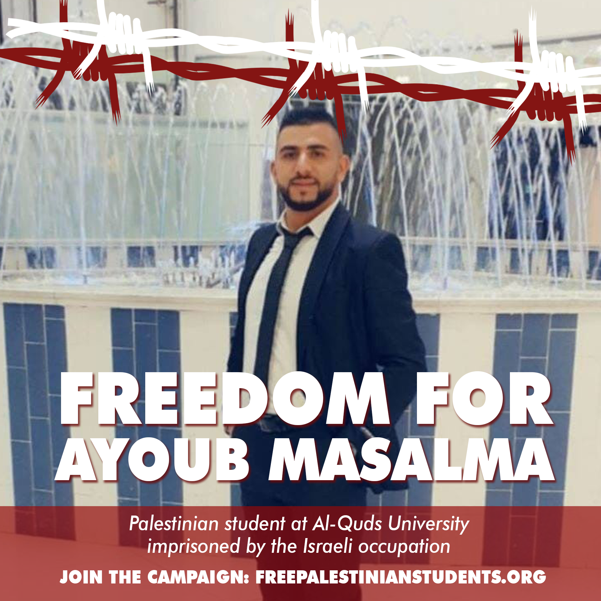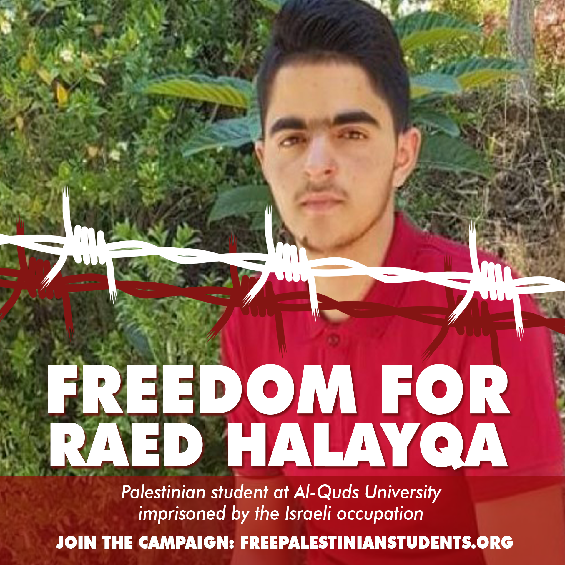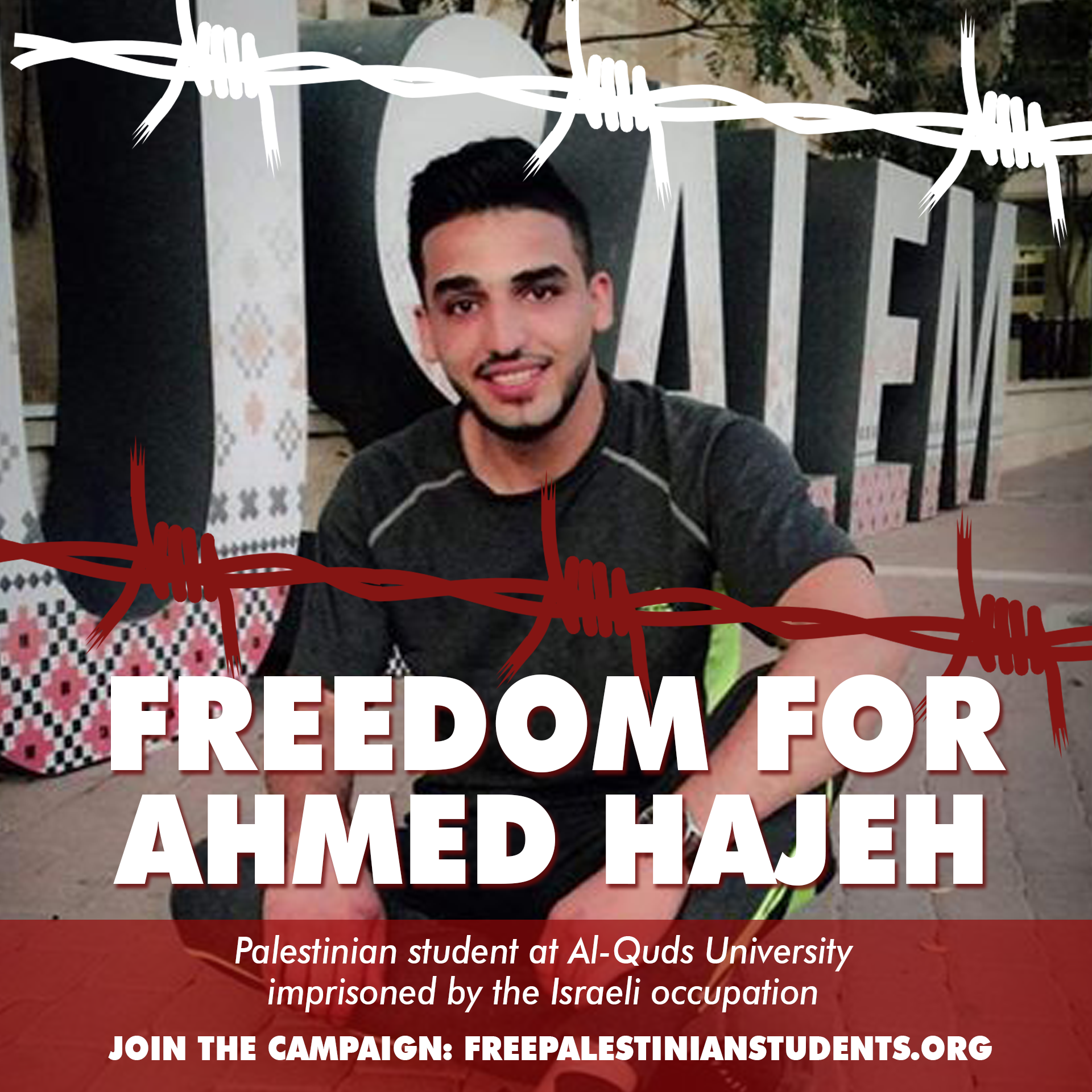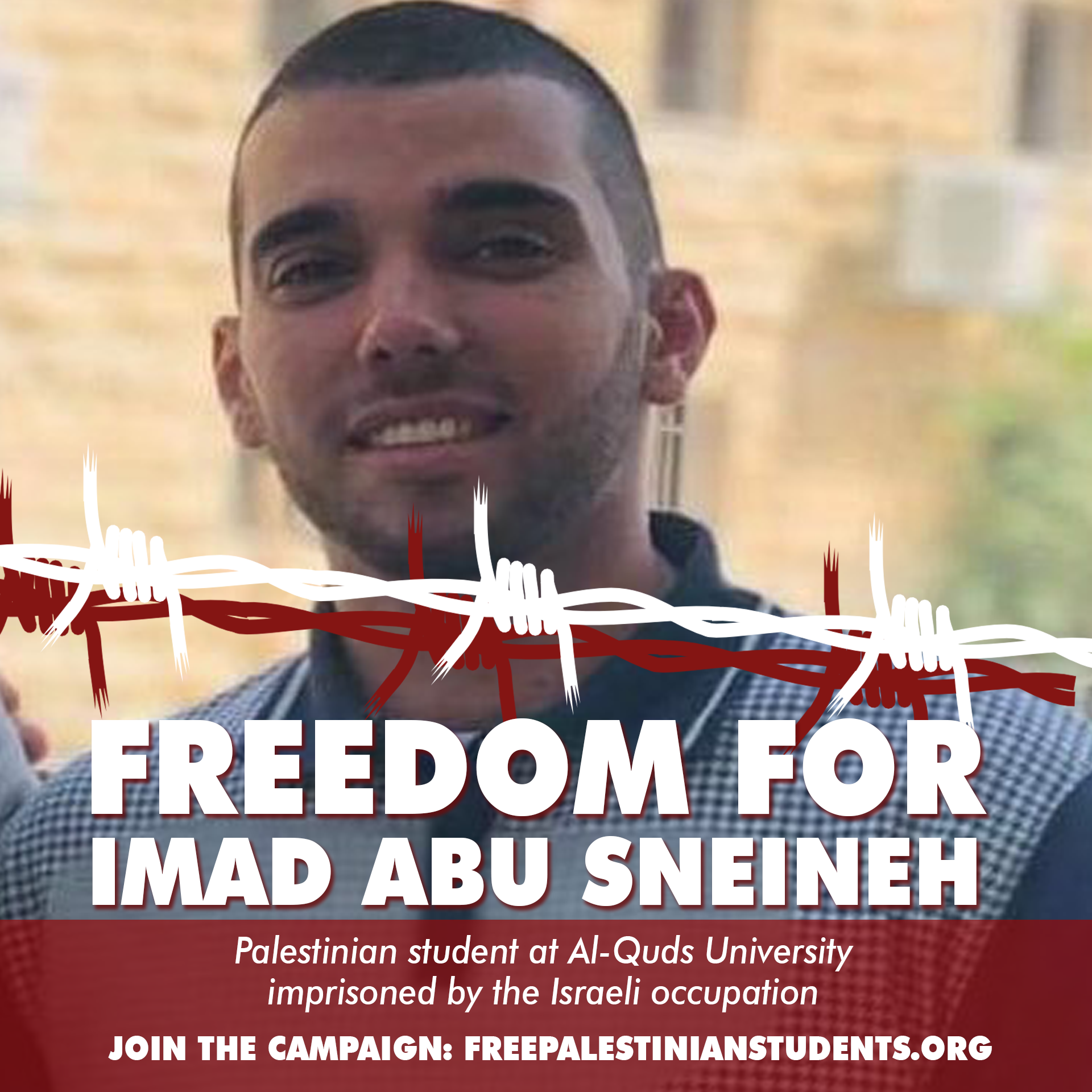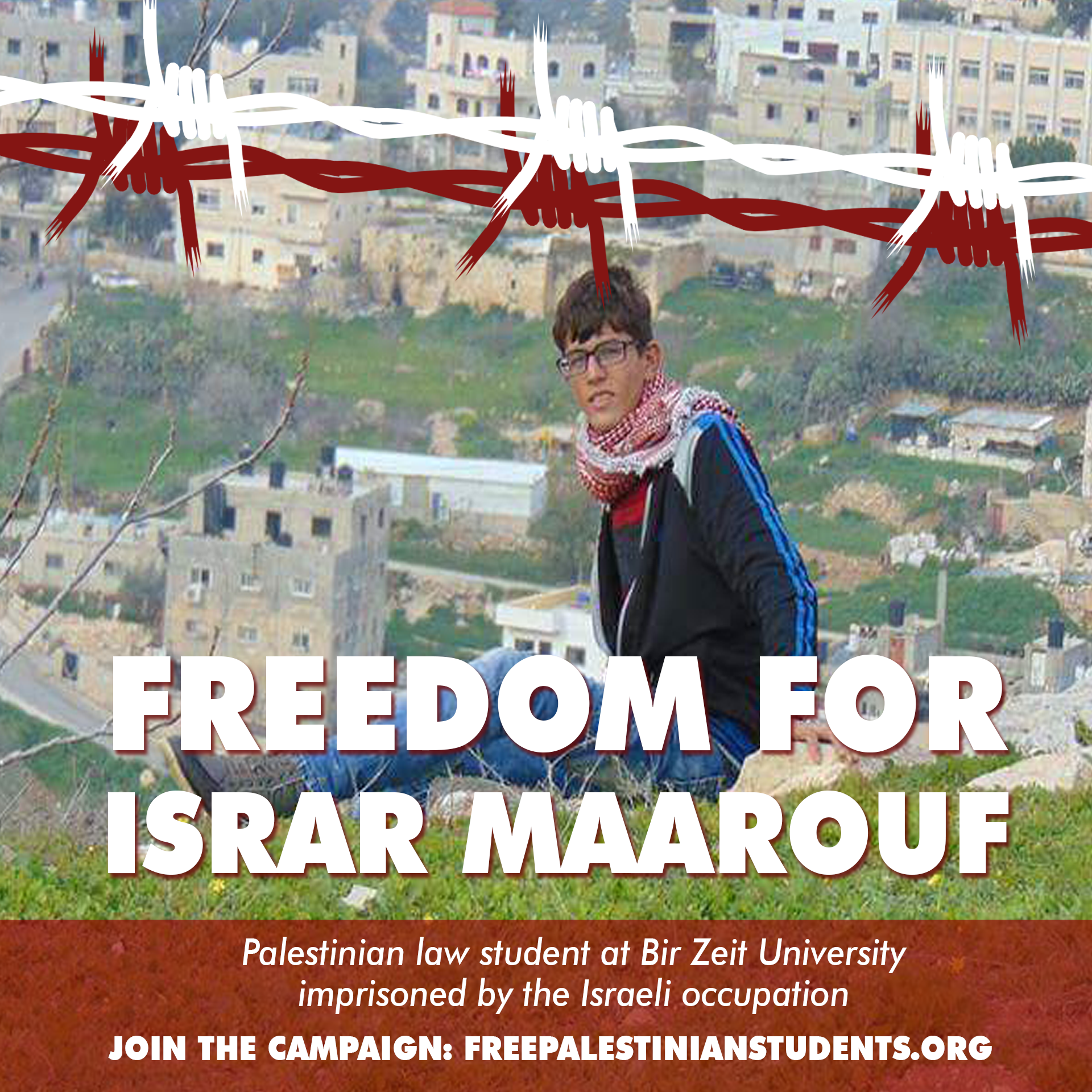 Vi, de undertecknade organisationerna, sluter samman våra röster i ett globalt upprop för fängslade palestinska studenters omedelbara frigivning och till försvar för palestinska studenters rätt till utbildning, till politiskt uttryck och engagemang och till att avgöra sin egen framtid. Den israeliska ockupation förföljer palestinska studenter och, i synnerhet, den palestinska studentrörelsen och palestinska studentorganisationer med sträng repression och politiskt fångenskap.