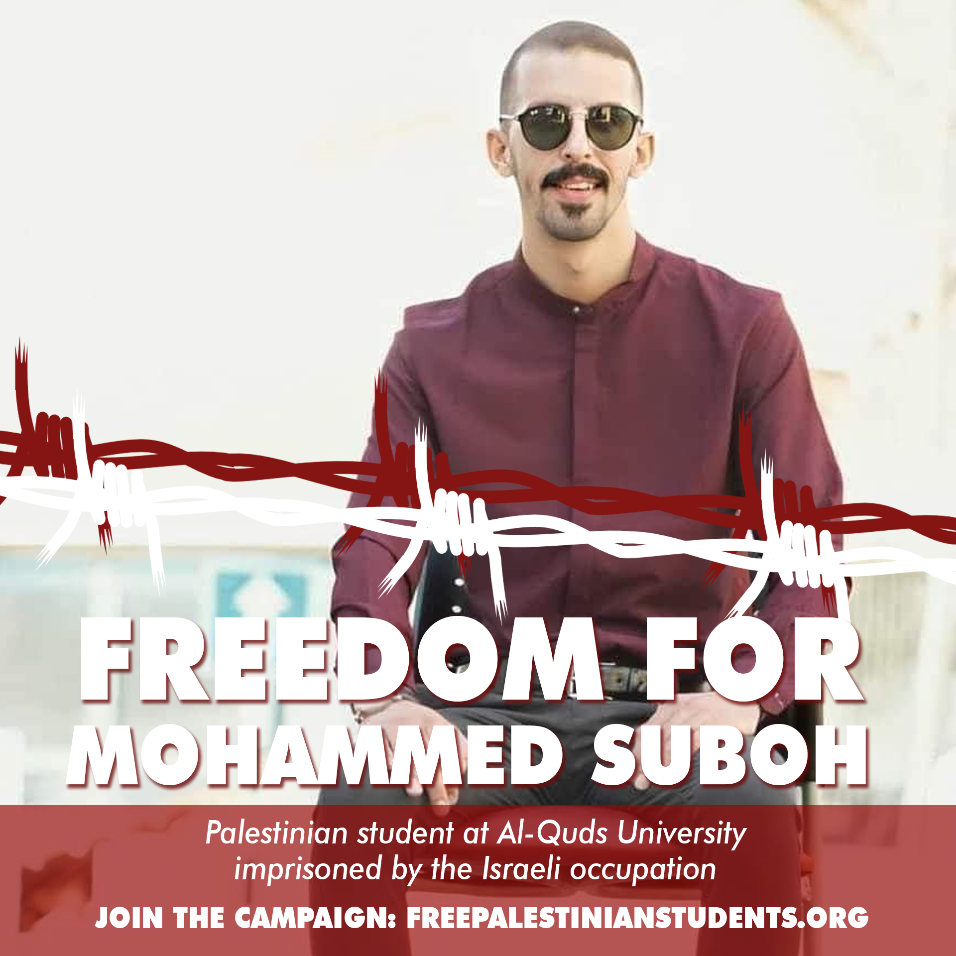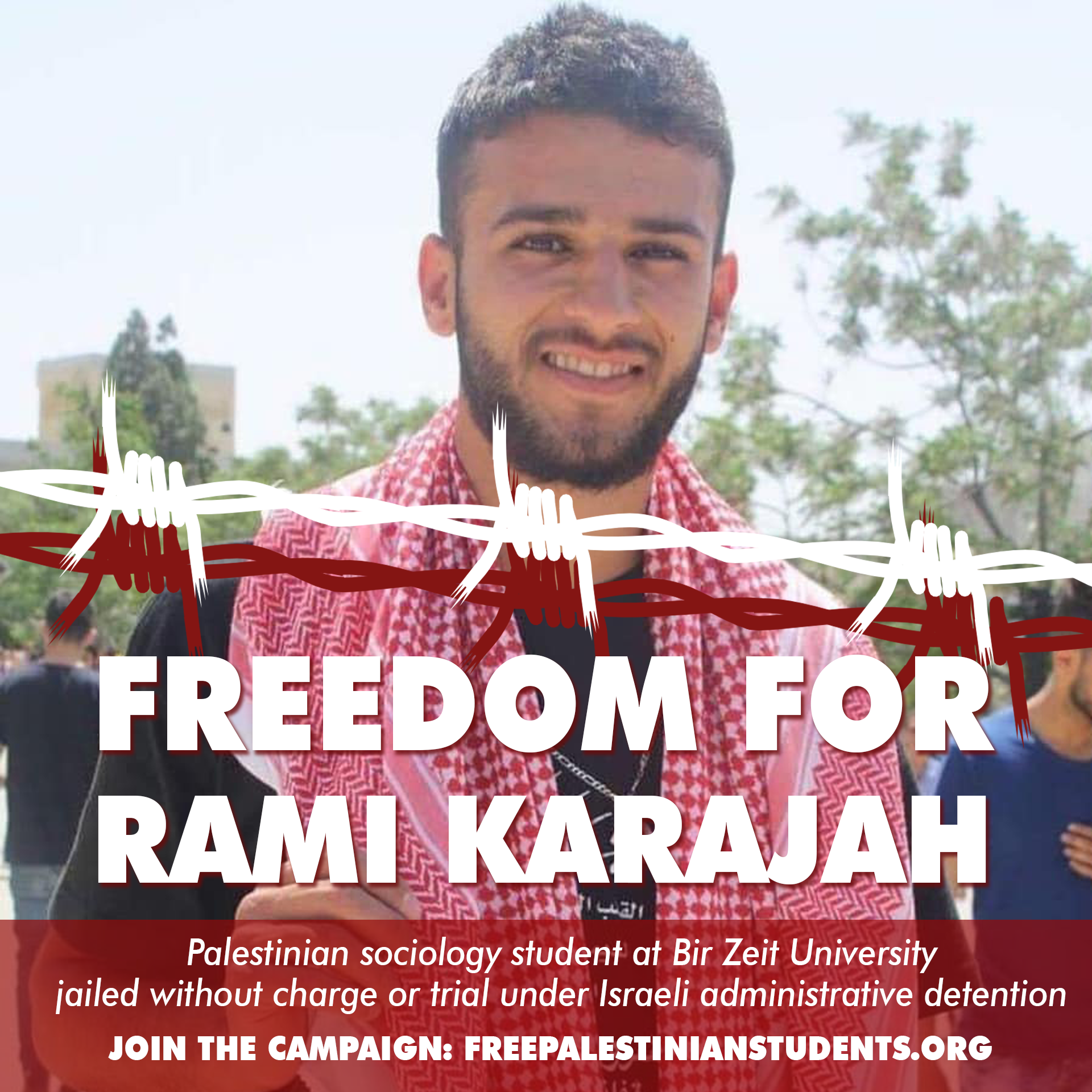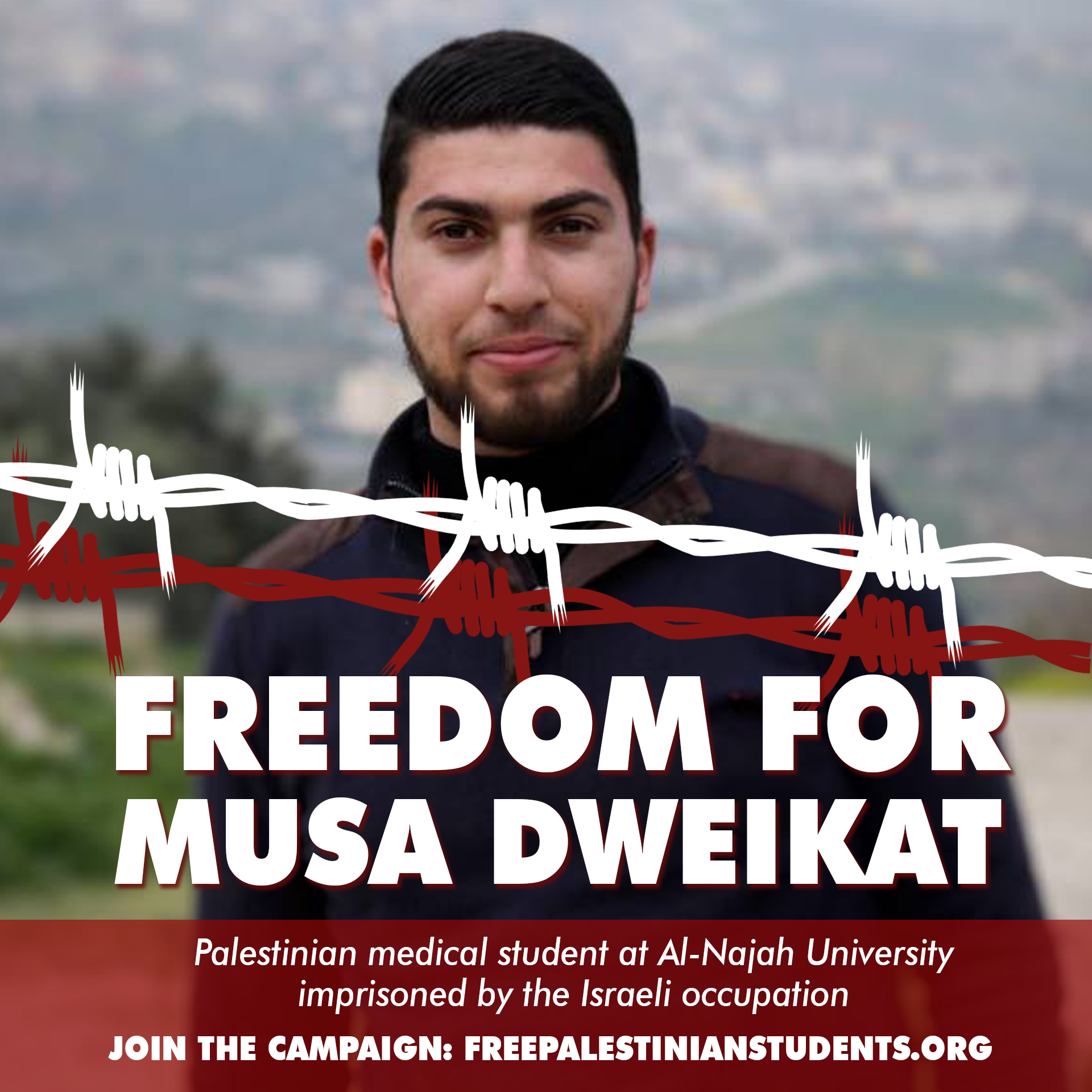 Wir rufen gemeinsam zur Aktion und Unterstützung der Palästinensischen Studierenden hinter Gittern auf, darunter :