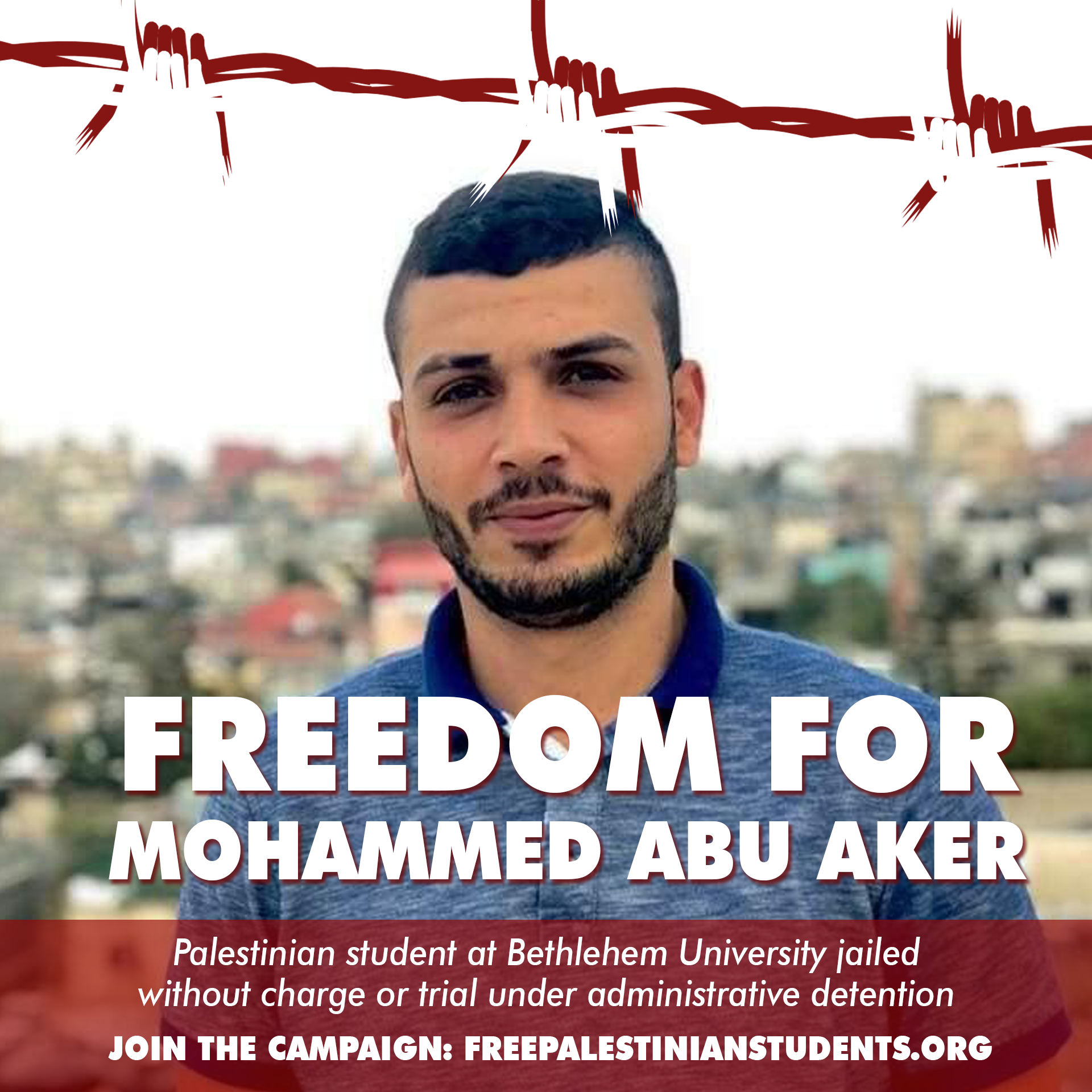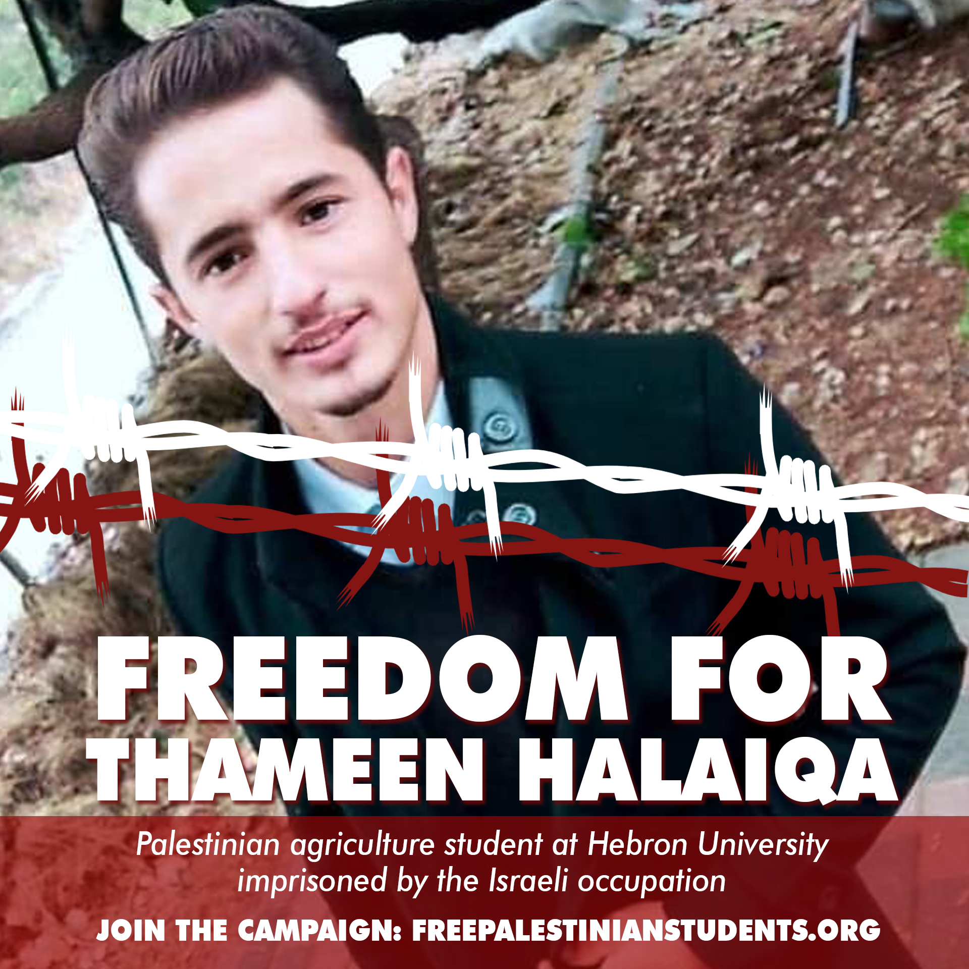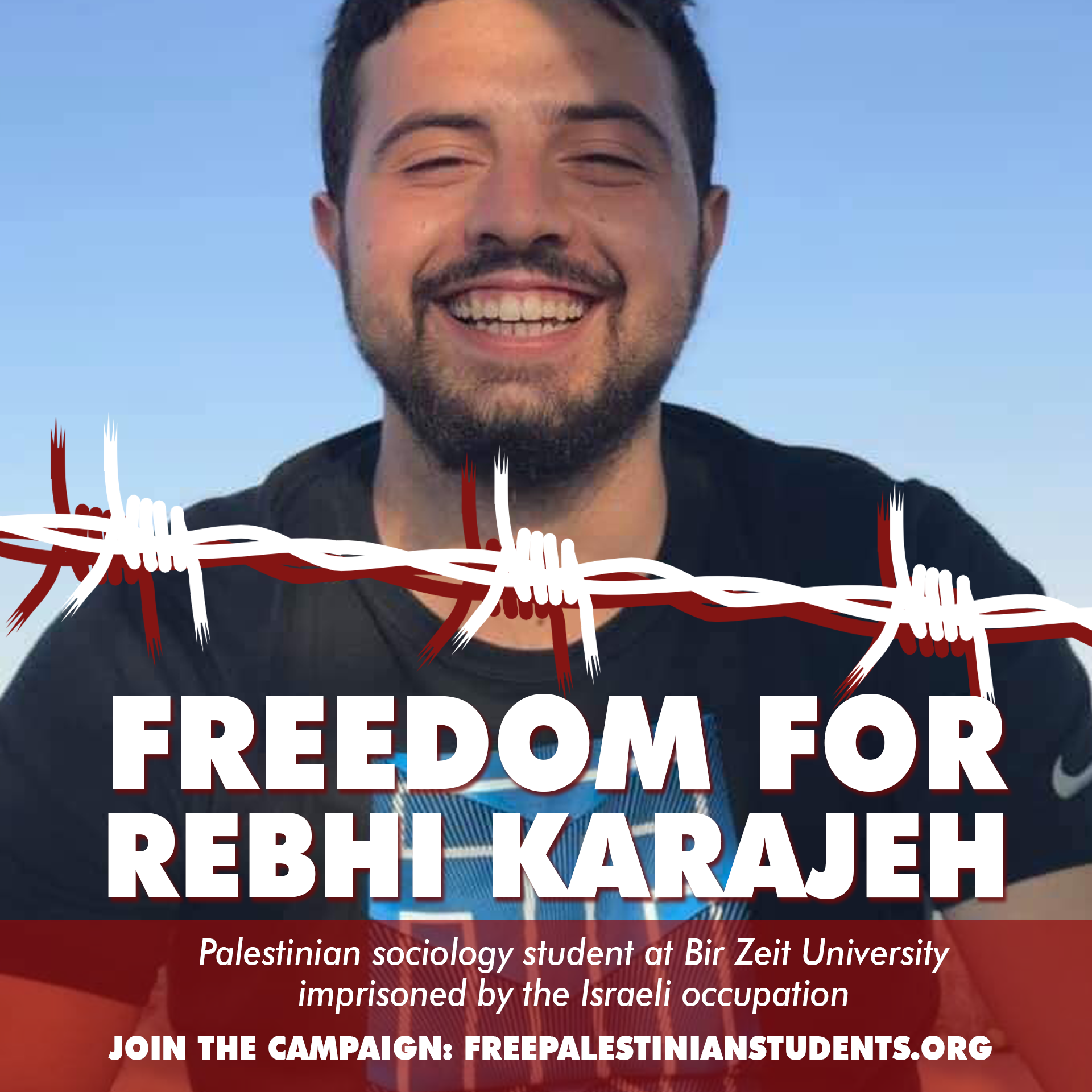 Wir rufen gemeinsam zur Aktion und Unterstützung der Palästinensischen Studierenden hinter Gittern auf, darunter :
