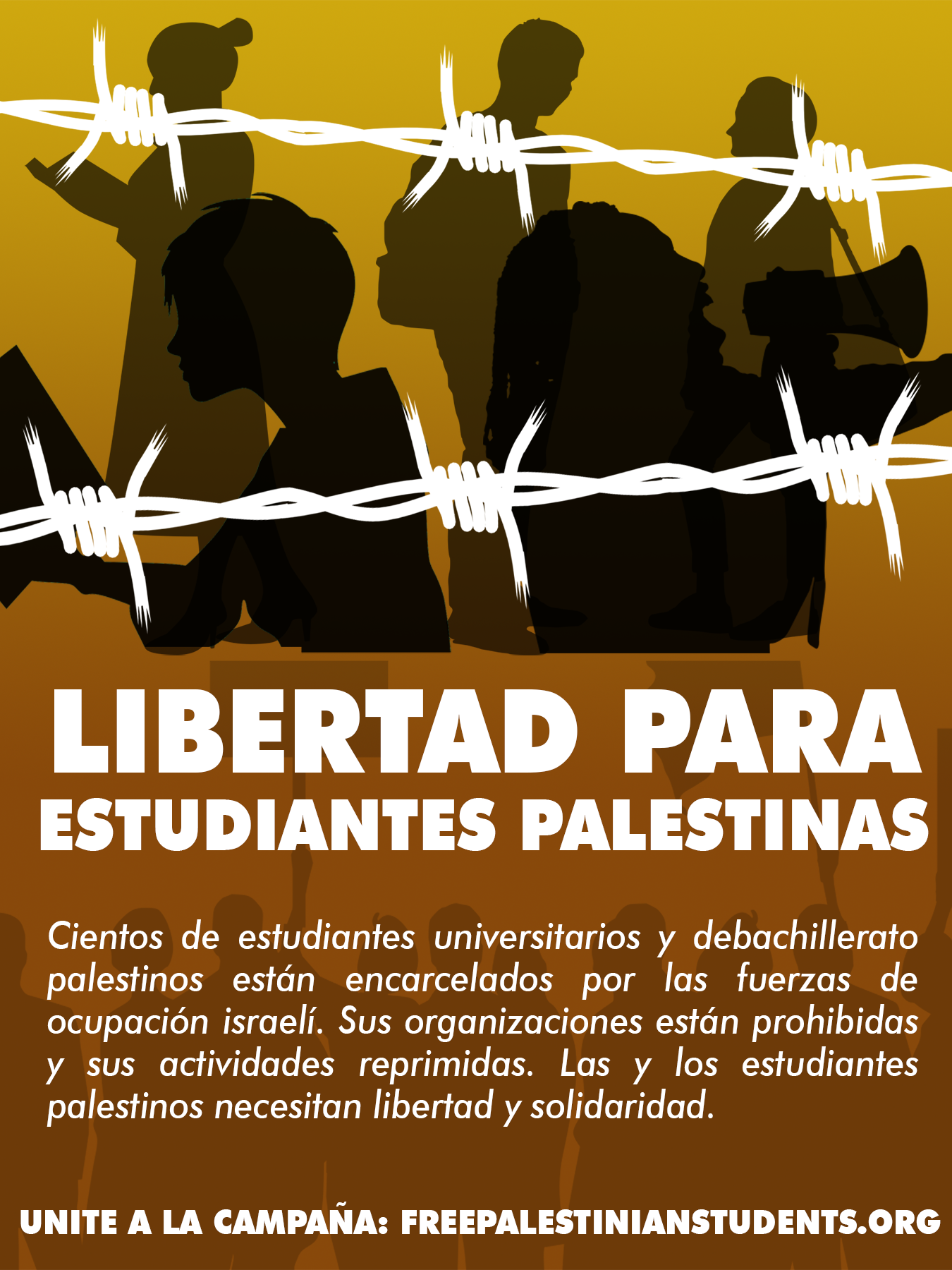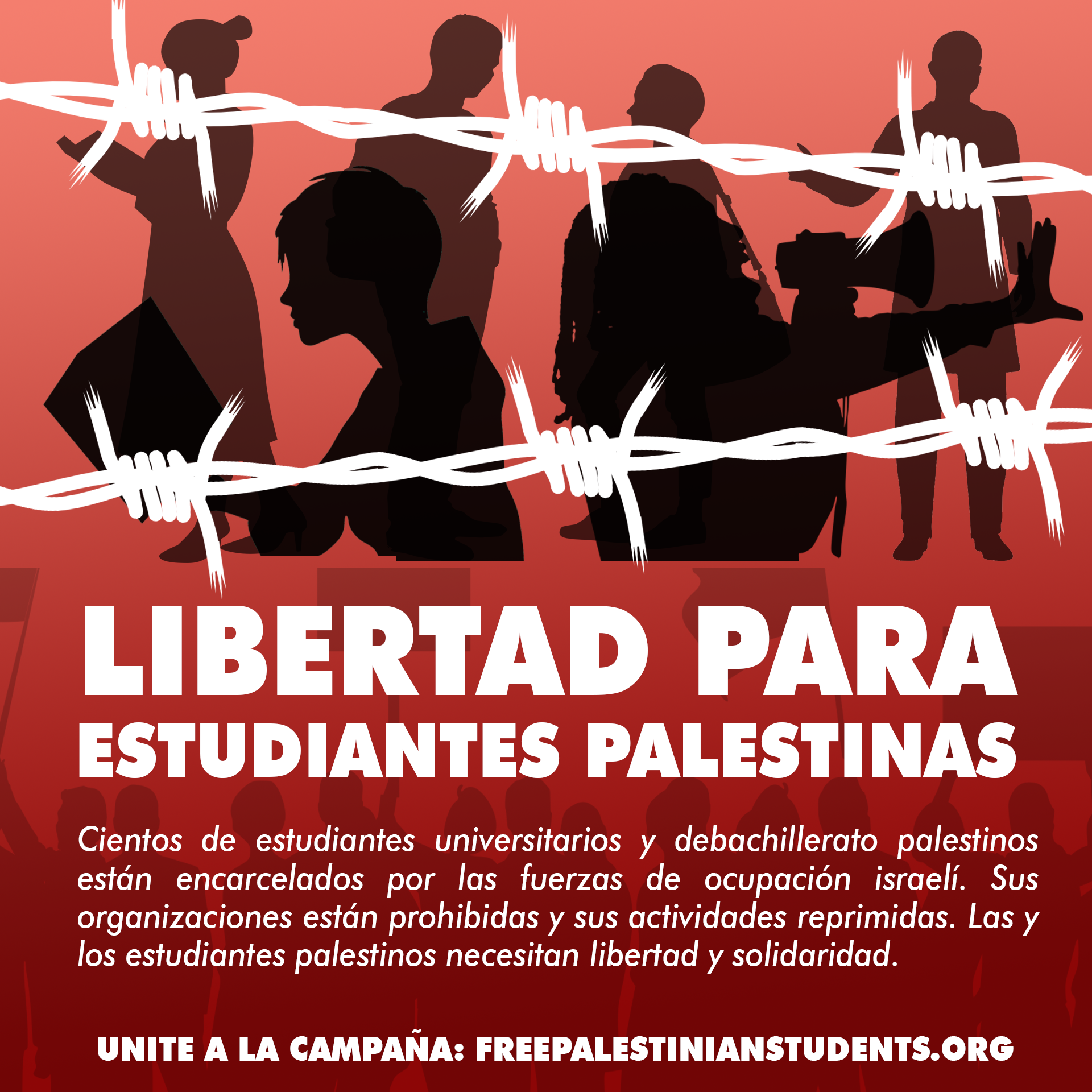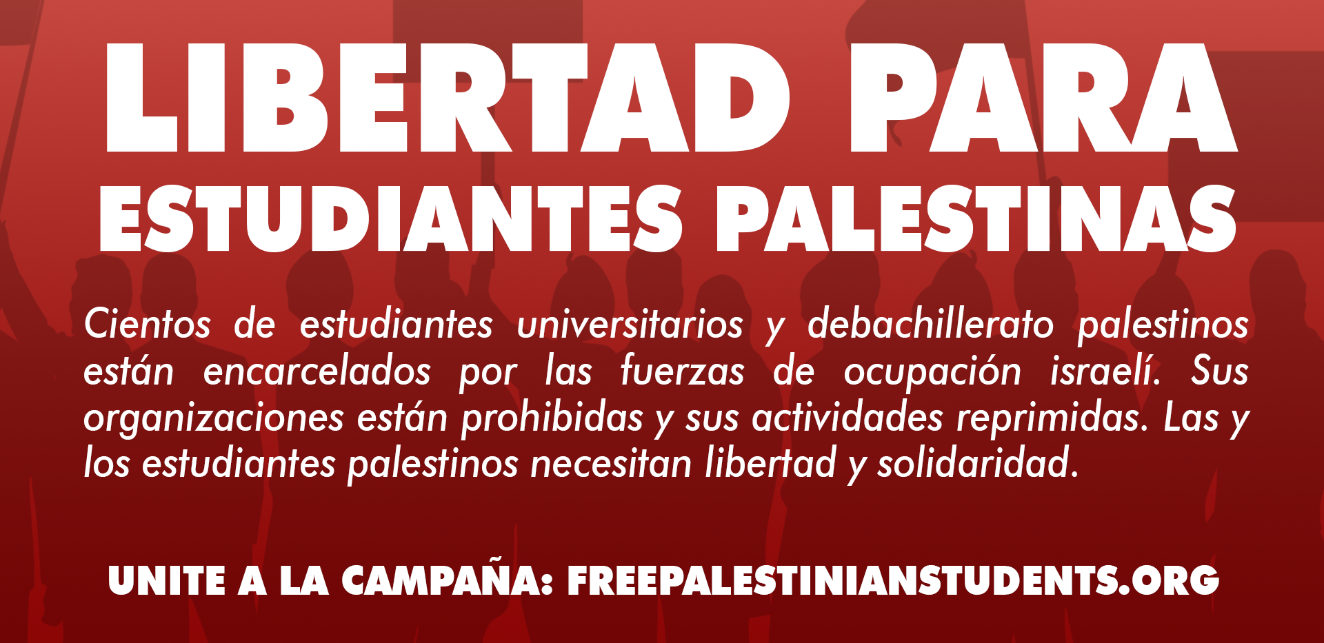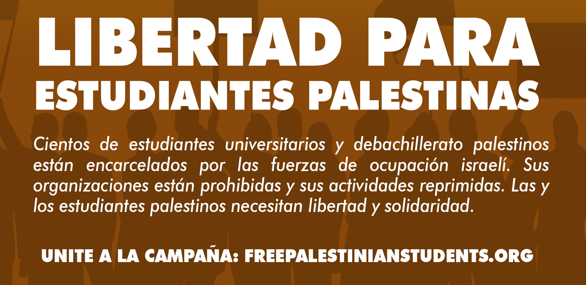 Nosotras, las organizaciones abajo firmantes, unimos nuestras voces en una llamada global para exigir la inmediata liberación de los estudiantes palestinos encarcelados y la protección de los derechos a la educación, a la libertad de expresión y participación política para los estudiantes palestinos y el derecho a procurarse un futuro mejor. Los estudiantes palestinos y específicamente el movimiento estudiantil palestino y las organizaciones estudiantiles palestinas han sido objeto de una dura represión, detención y encarcelamientos políticos por parte de la ocupación Israelí.