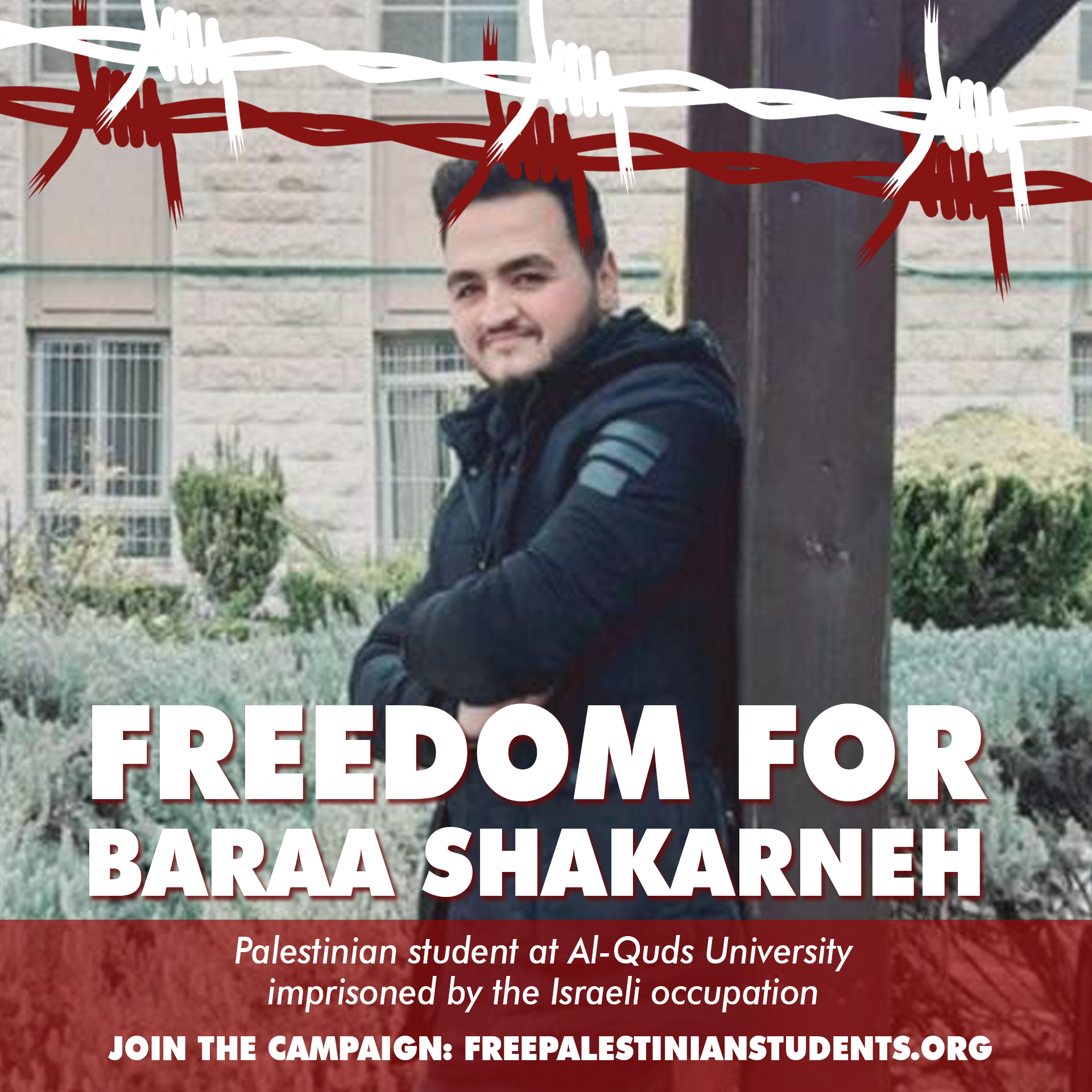 نتحد اليوم معاً وندعوكم إلى الانخراط في العمل في سبيل حرية الطلبة الفلسطينيين خلف القضبان، بما في ذلك: