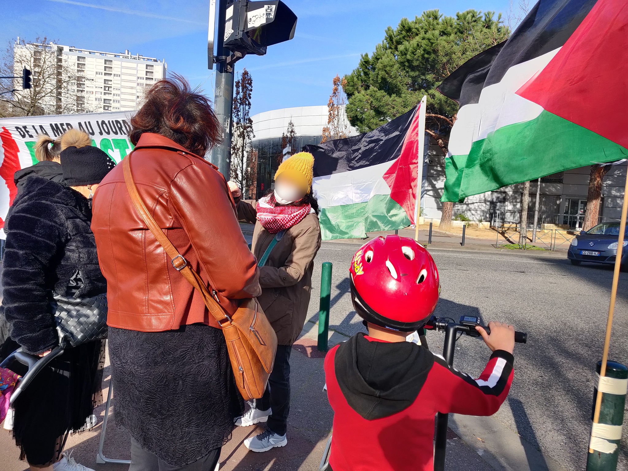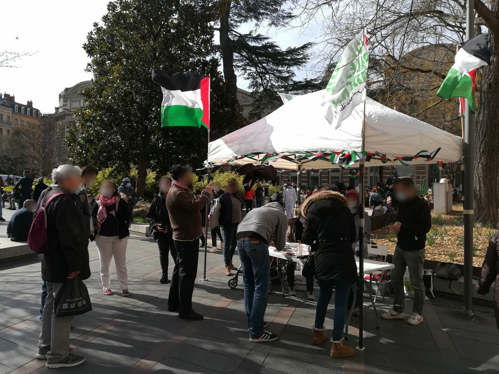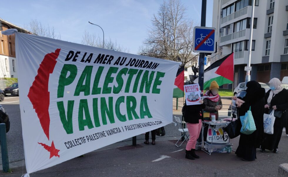 This came one day after another Palestine Stand on Friday, February 19, organized at the exit of Bagatelle metro in Toulouse, during the La Faourette market. Once again, activists displayed a large banner declaring, “From the river to the sea, Palestine will win,” and Palestinian flags, while distributing leaflets on the history of Zionist colonization in Palestine and the importance of developing solidarity with the Palestinian resistance.