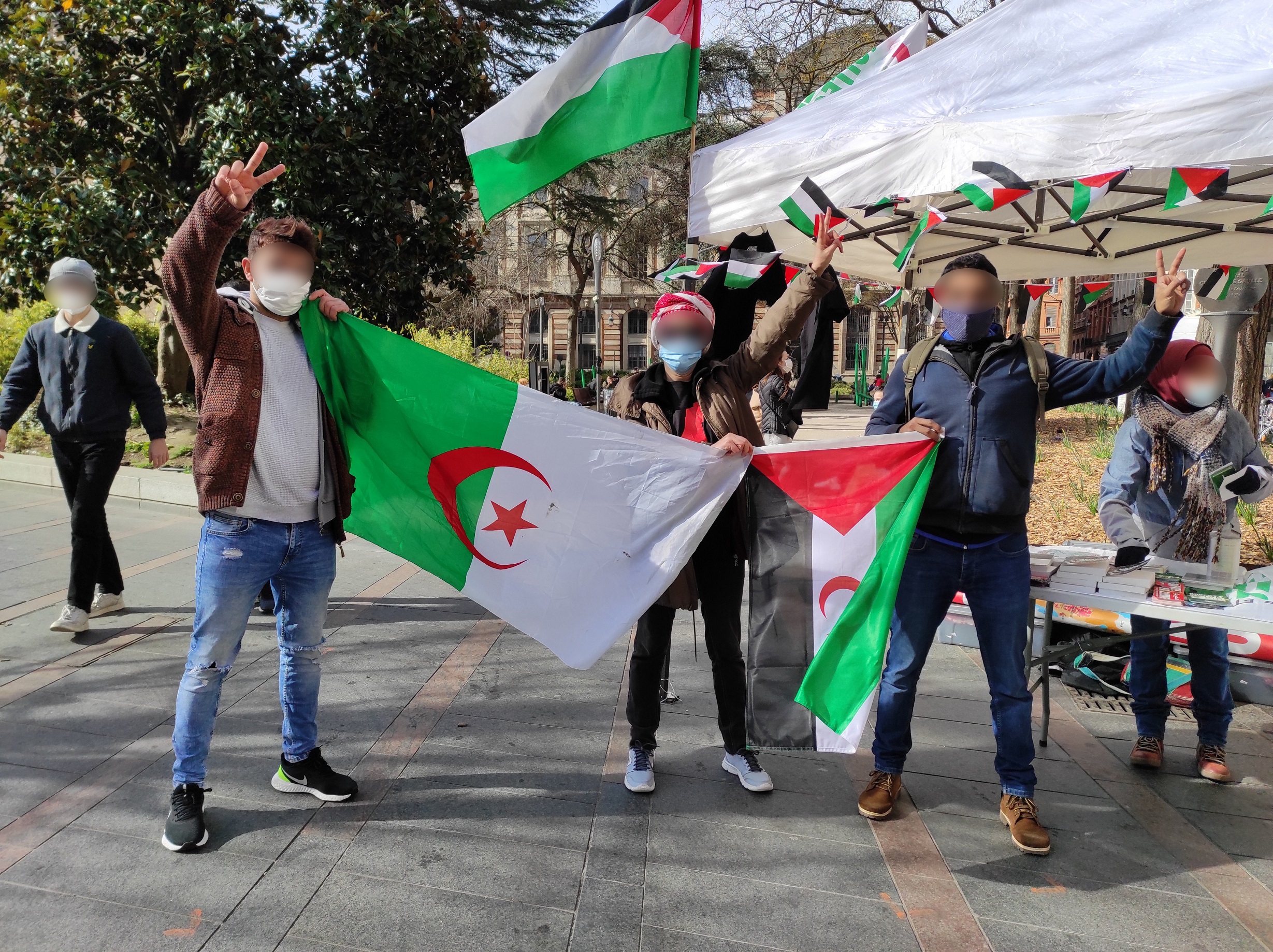 The Palestine Stand ended with the reading of the poem, “The Martyr,” by Abdel-Rahim Mahmoud, and an improvised Dabkeh dance. Participants held up Algerian and Sahrawi flags alongside the Palestinian flag, emphasizing that the Palestinian cause is one of all peoples of the Arab world and, more broadly, of all people who stand for justice and equality.