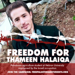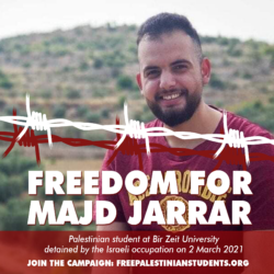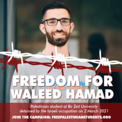 Join the campaign for a social media storm on Thursday, 11 March, using the hashtag #FreePalestinianStudents. A list of sample tweets and images you can use is available at https://bit.ly/FreePalestinianStudents.