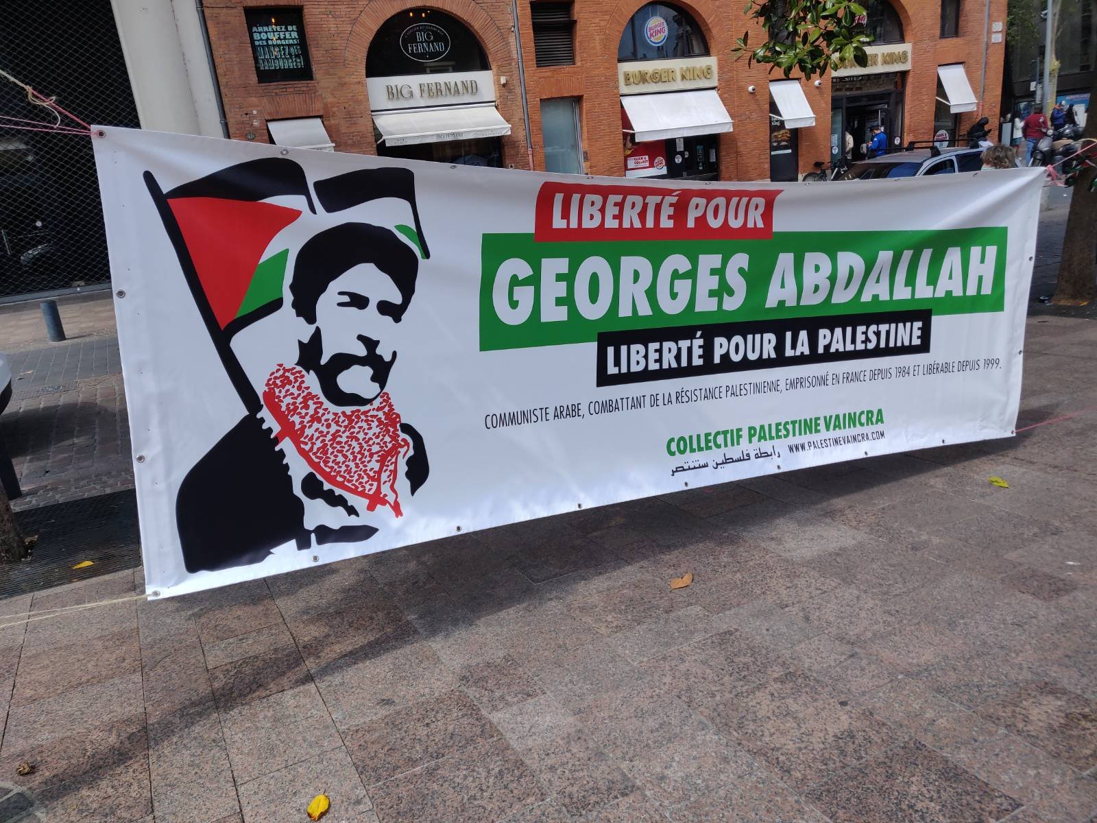 The Collectif also displayed several large banners, in support of Palestinian prisoners, for the liberation of Georges Abdallah — Arab struggler for Palestine jailed for over 36 years in France — and promoting the boycott of Israel.