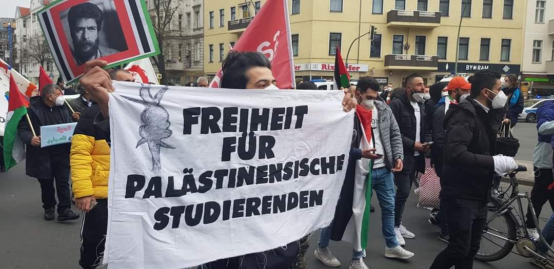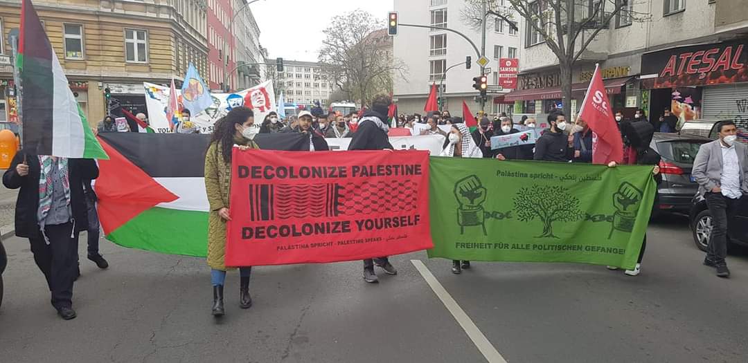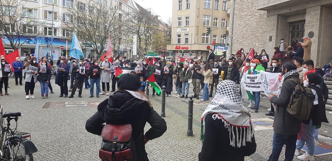The demonstration in Berlin was also accompanied by many actions and protests throughout Germany for Palestinian Prisoners’ Day.