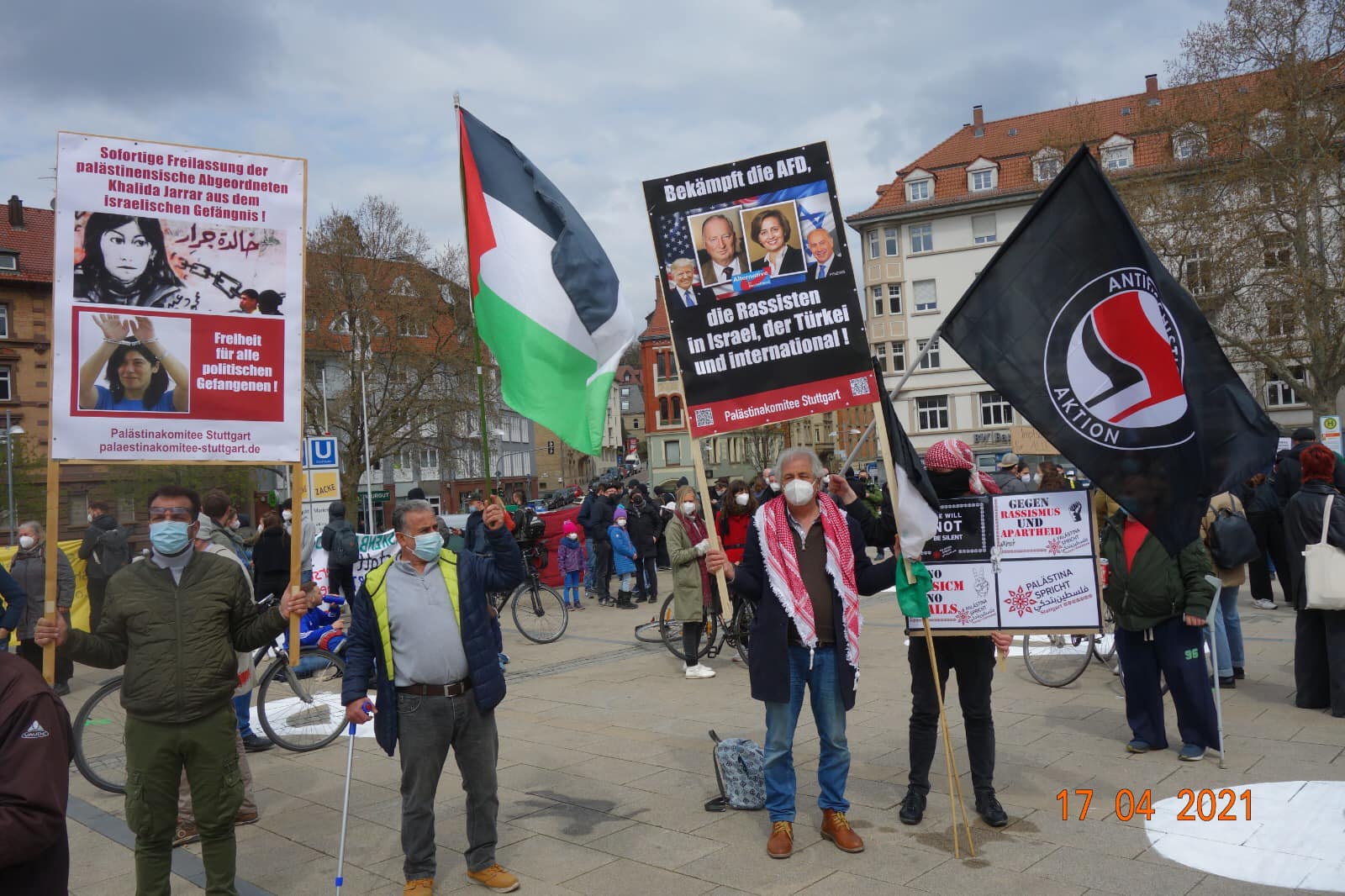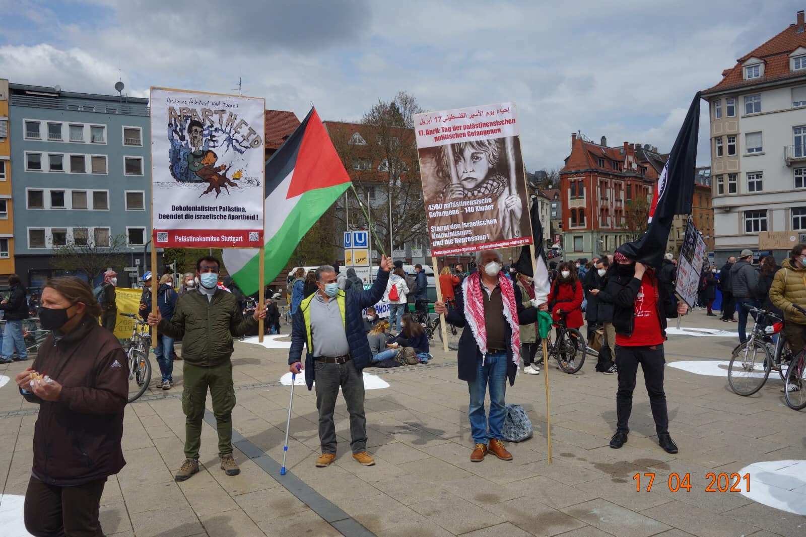 In Stuttgart, the Palästinakomitee Stuttgart, together with several organizations, joined in an anti-racist and anti-fascist demonstration in the city with signs, banners and Palestinian flags to mark Palestinian Prisoners’ Day. The committee drew attention to the campaign to free Palestinian students and highlighted the conditions and unjust detention of Palestinian political prisoners in Israeli jails.