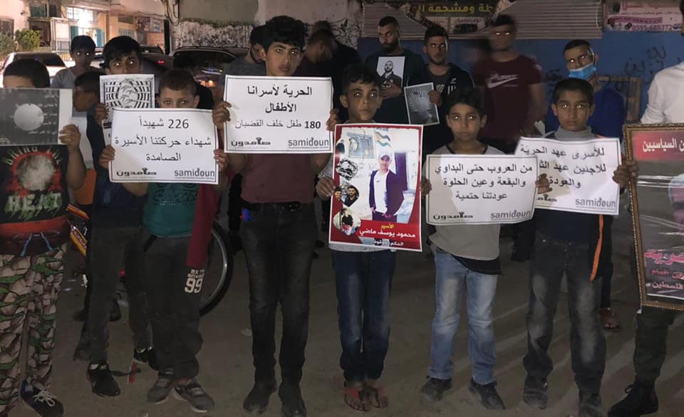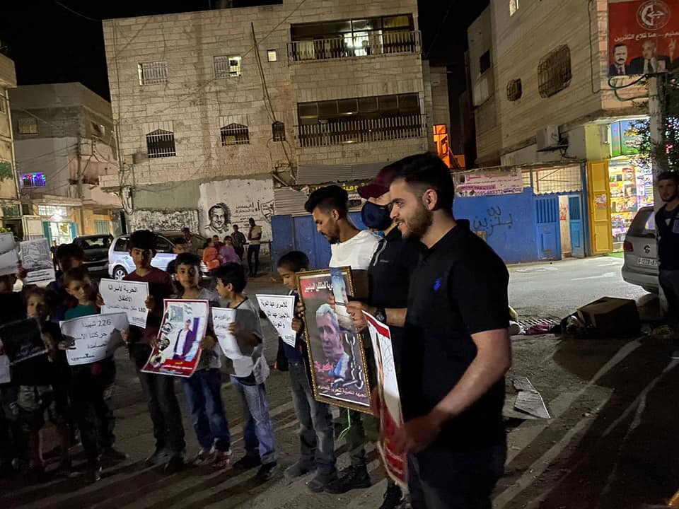 That evening, following Taraweeh prayers, night prayers performed during Ramadan, Samidoun activists, family members of prisoners and youth in Al-Arroub refugee camp near al-Khalil gathered to recognize Palestinian Prisoners’ Day and call for the liberation of imprisoned Palestinian strugglers.