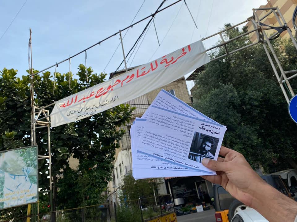 The Lebanese Democratic Youth Union conducted a public education campaign on the case of Georges Ibrahim Abdallah in the Ruwais neighborhood of Beirut on 17 April, calling for his liberation and highlighting the need for popular struggle to obtain his freedom.