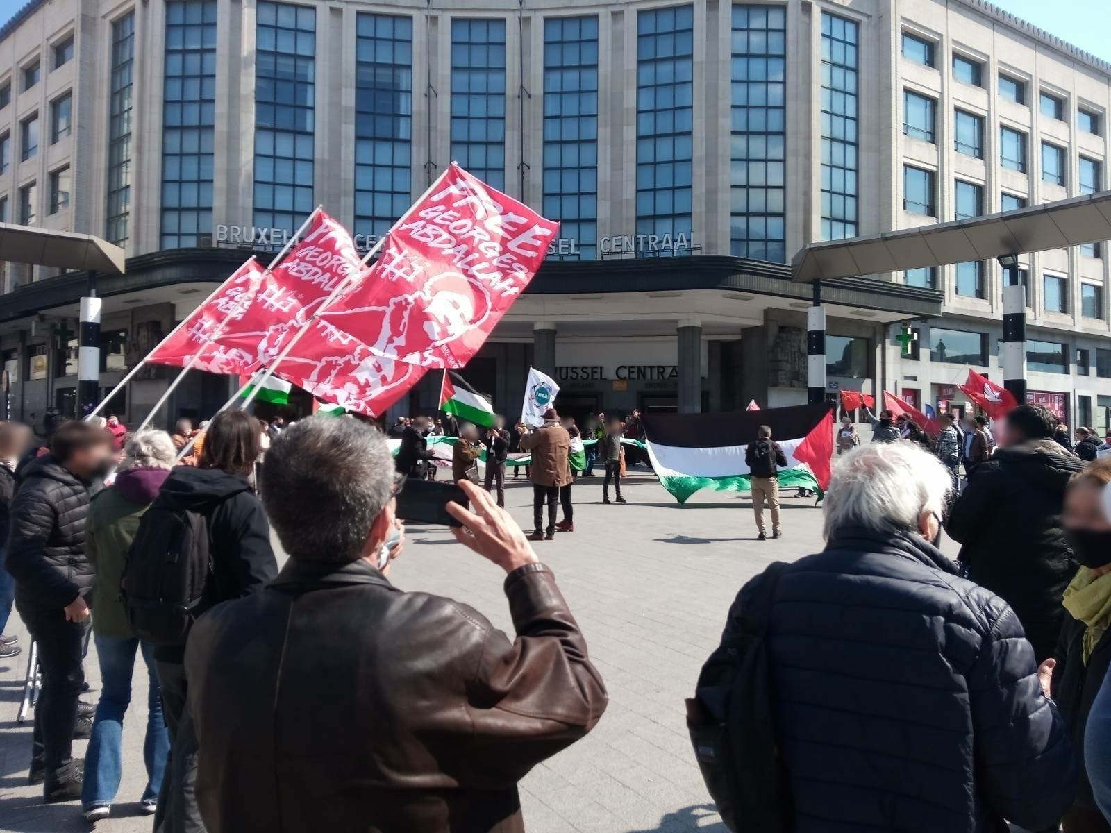In Brussels, Belgium, the Palestinian Community In Belgium and Luxembourg, Intal, and many other organizations protested outside the Gare Centrale, the central train station, marking Palestinian Prisoners’ Day and calling for the liberation of detained Palestinians.