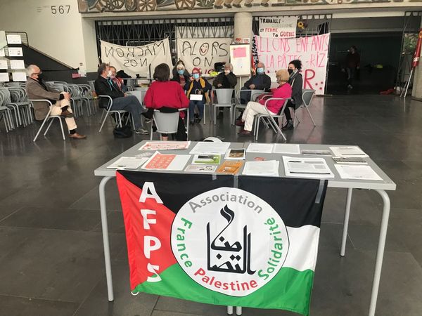 On 19 April, AFPS 63 in Clermont-Ferrand made a presentation to dozens of people at the Comédie hall, part of a protest occupation since 15 March 2021. They highlighted the centrality of the prisoners’ struggle to justice and liberation in Palestine, urged a broad boycott of Israel to free Palestinian prisoners and gathered letters of solidarity in support of Georges Abdallah and imprisoned Palestinian children.