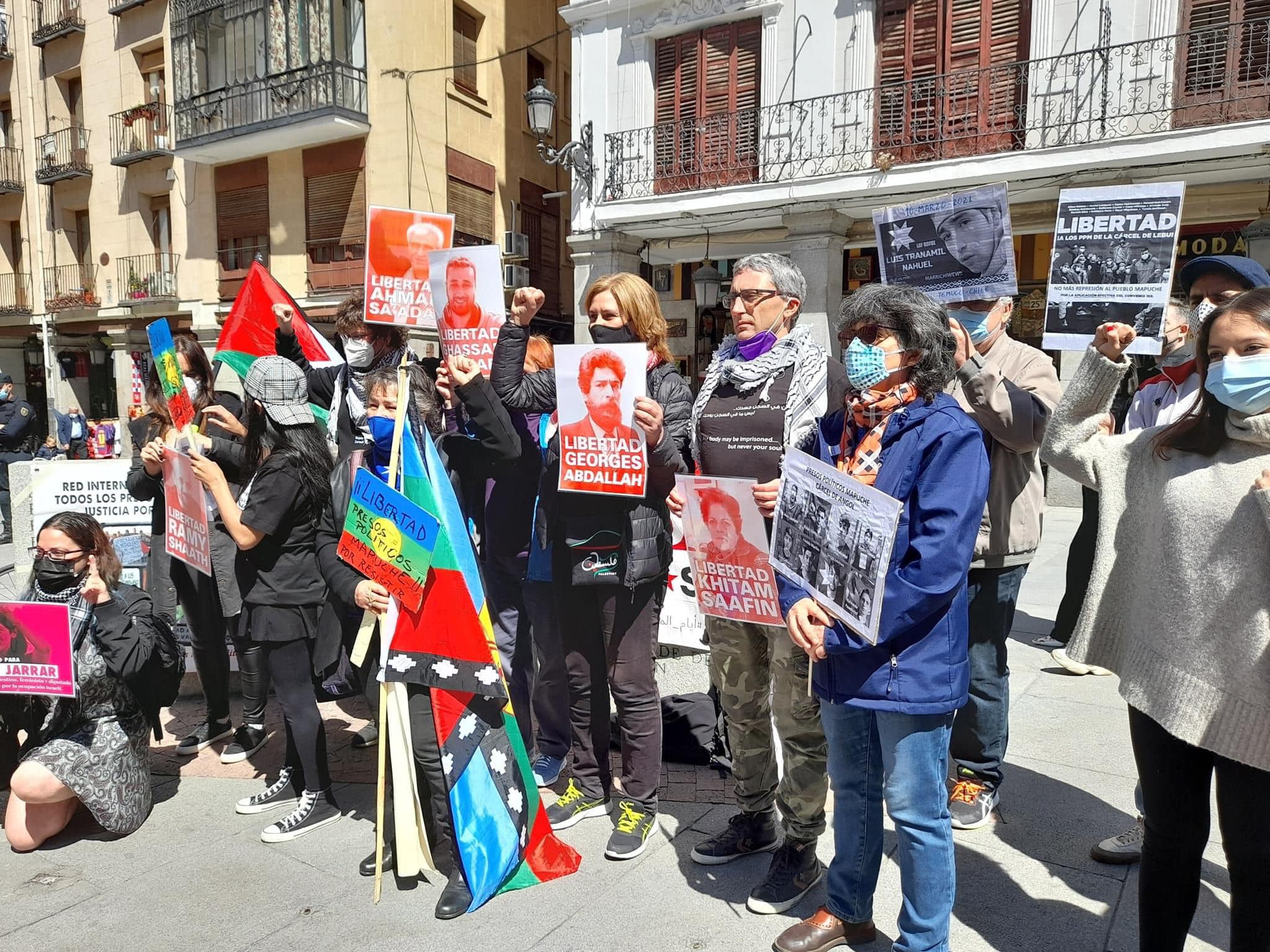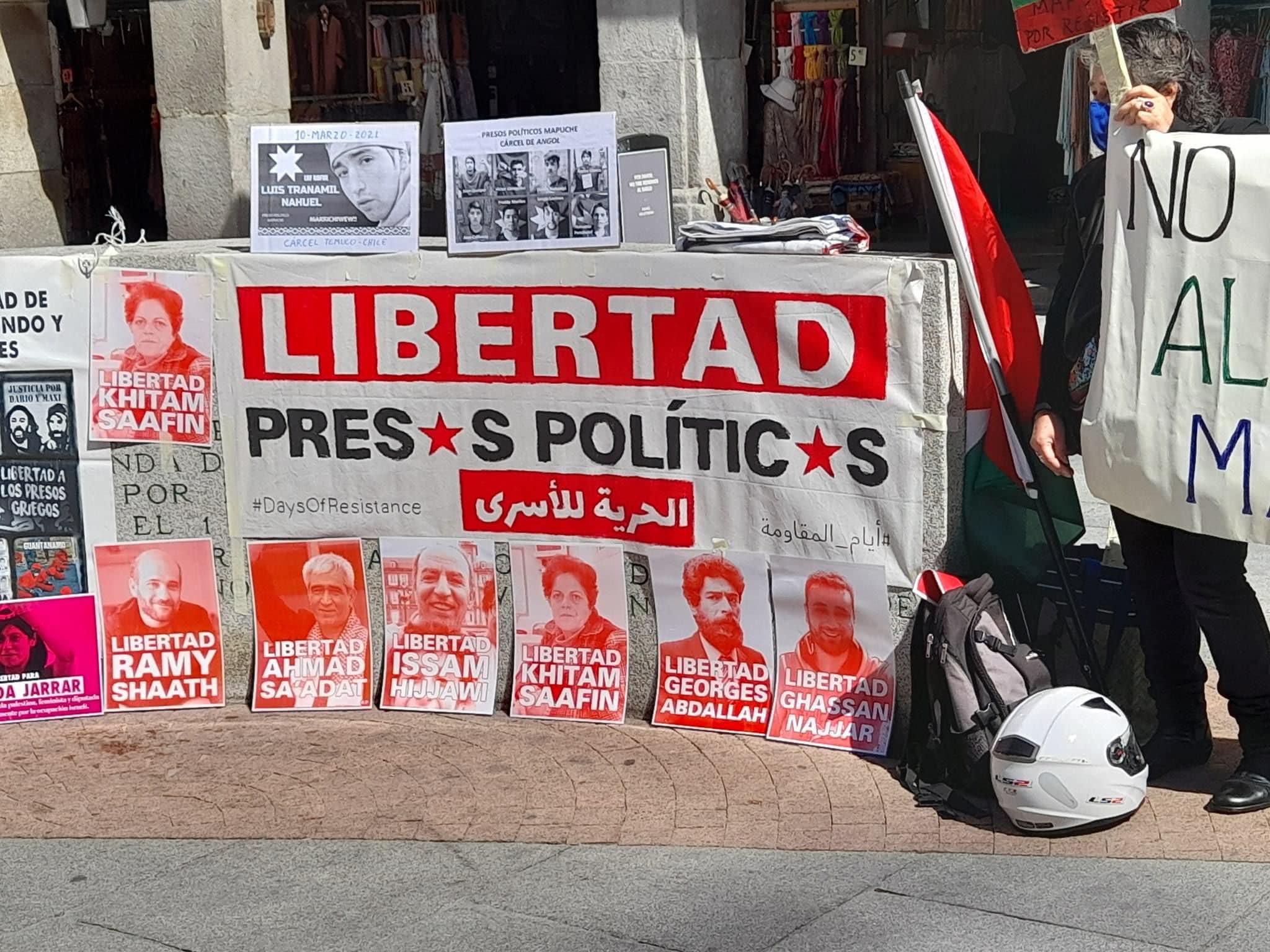 In Madrid, Spain, Samidoun España, Alkarama, and international associations for political prisoners gathered for a protest outside the Spanish Ministry of Foreign Relations on Saturday, 17 April to demand freedom for Palestinian political prisoners and international revolutionary prisoners.