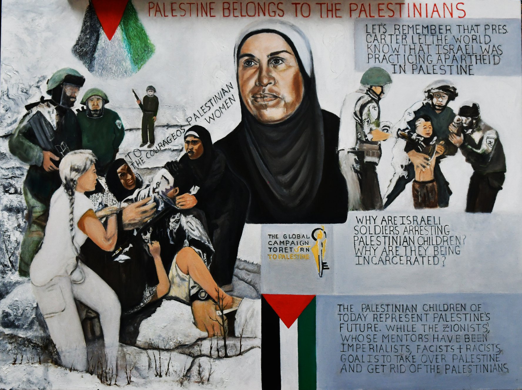 Puerto Rican former political prisoner Oscar Lopez Rivera issued a new painting highlighting the struggle of Palestinian political prisoners for Palestinian Prisoners’ Day. Oscar was the longest held Puerto Rican political prisoner – 36 years – released in 2017. He remains a committed Independentista – insisting that the US has no right to keep Puerto Rico as a colony and demanding freedom for his people. The poster salutes the The Global Campaign to Return to Palestine.