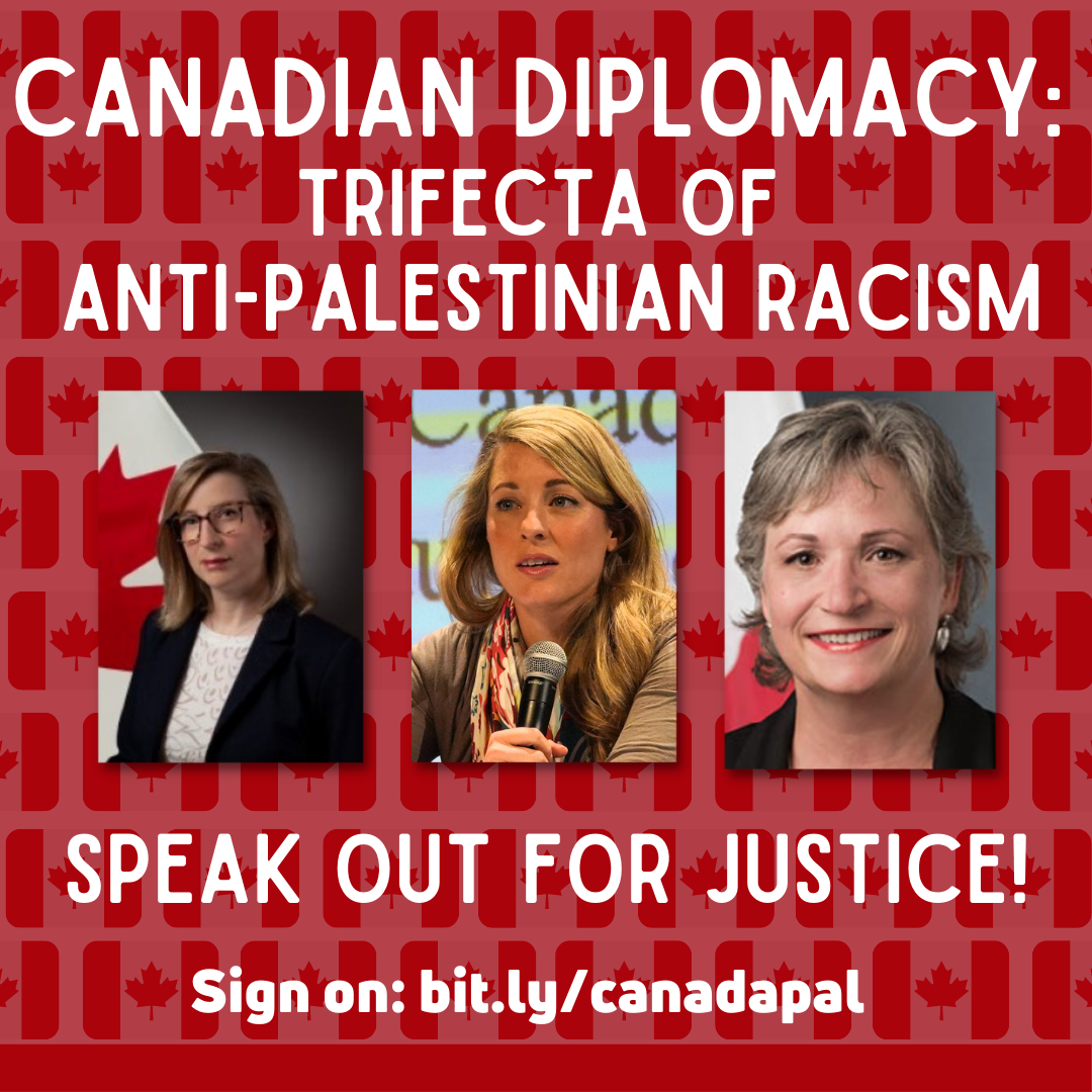 Take one minute to write to Prime Minister Trudeau, Head of Mission in Ramallah Wettlaufer, Ambassador Stadelbauer in Tel Aviv, and Foreign Affairs Minister Joly.
