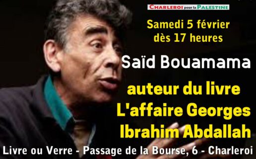 We encourage all to join the Plate-forme for their next event — a meeting with Saïd Bouamama, author of the book, “L’Affaire Georges Ibrahim Abdallah.” Georges Abdallah, a Lebanese Arab struggler for Palestine, has been imprisoned for over 37 years in France. Join the event on Saturday, 5 February at 5:00 pm at Livre ou Verre, Passage de la Bourse 6, in Charleroi, Belgium.