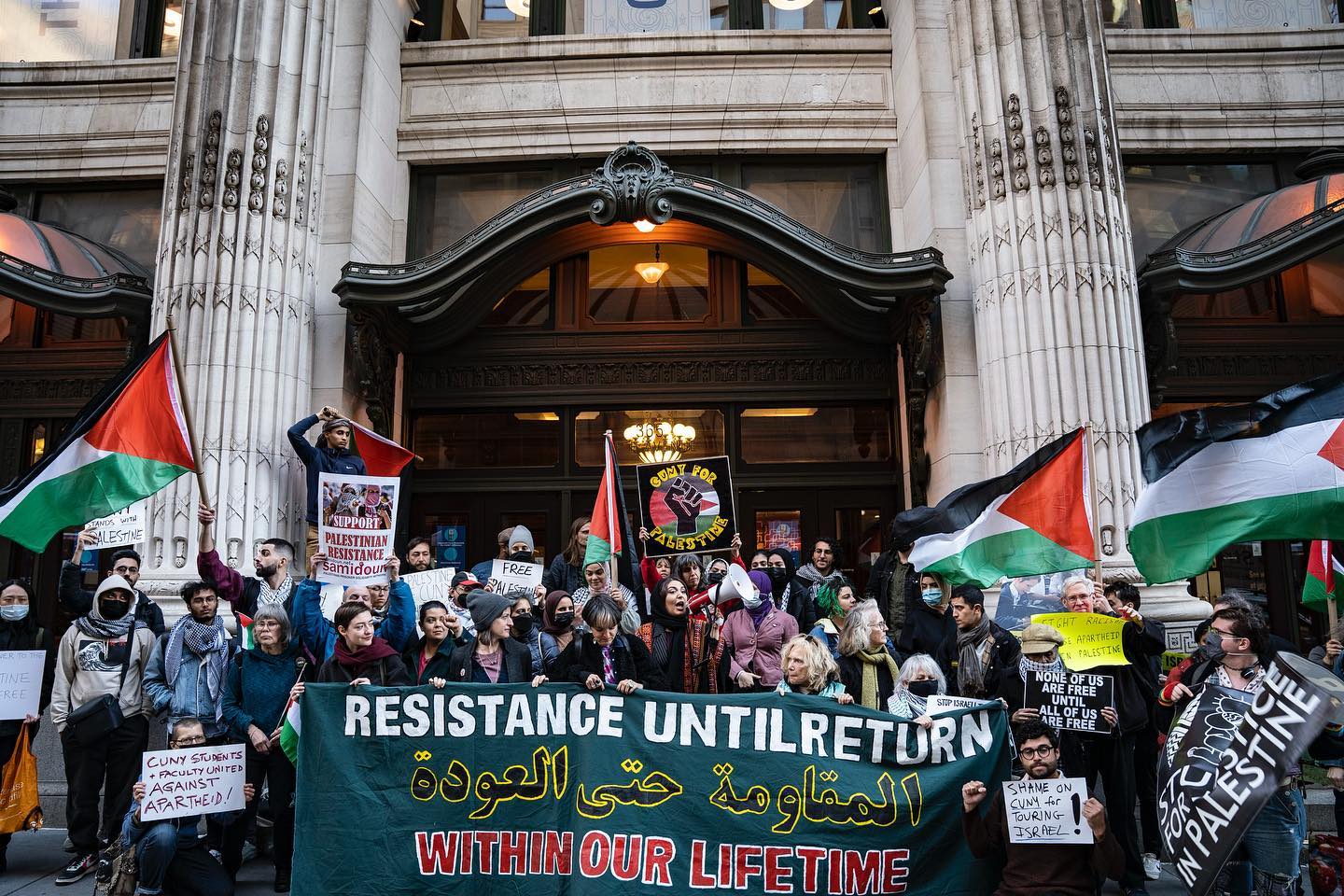 The speech followed ongoing strong organizing for Palestine at CUNY and particularly its law school, where the student body adopted resolutions endorsing the boycott, divestment and sanctions campaign against Israel in support of Palestinian liberation. At the same time, the chancellor of CUNY went on a junket to occupied Palestine sponsored by Zionist organizations and then cancelled the Palestine Lives conference, organized by WOL and Existence is Resistance, only days after his return. However, the same week, CUNY Law’s faculty adopted the BDS resolution, calling for justice in Palestine and an end to CUNY complicity.