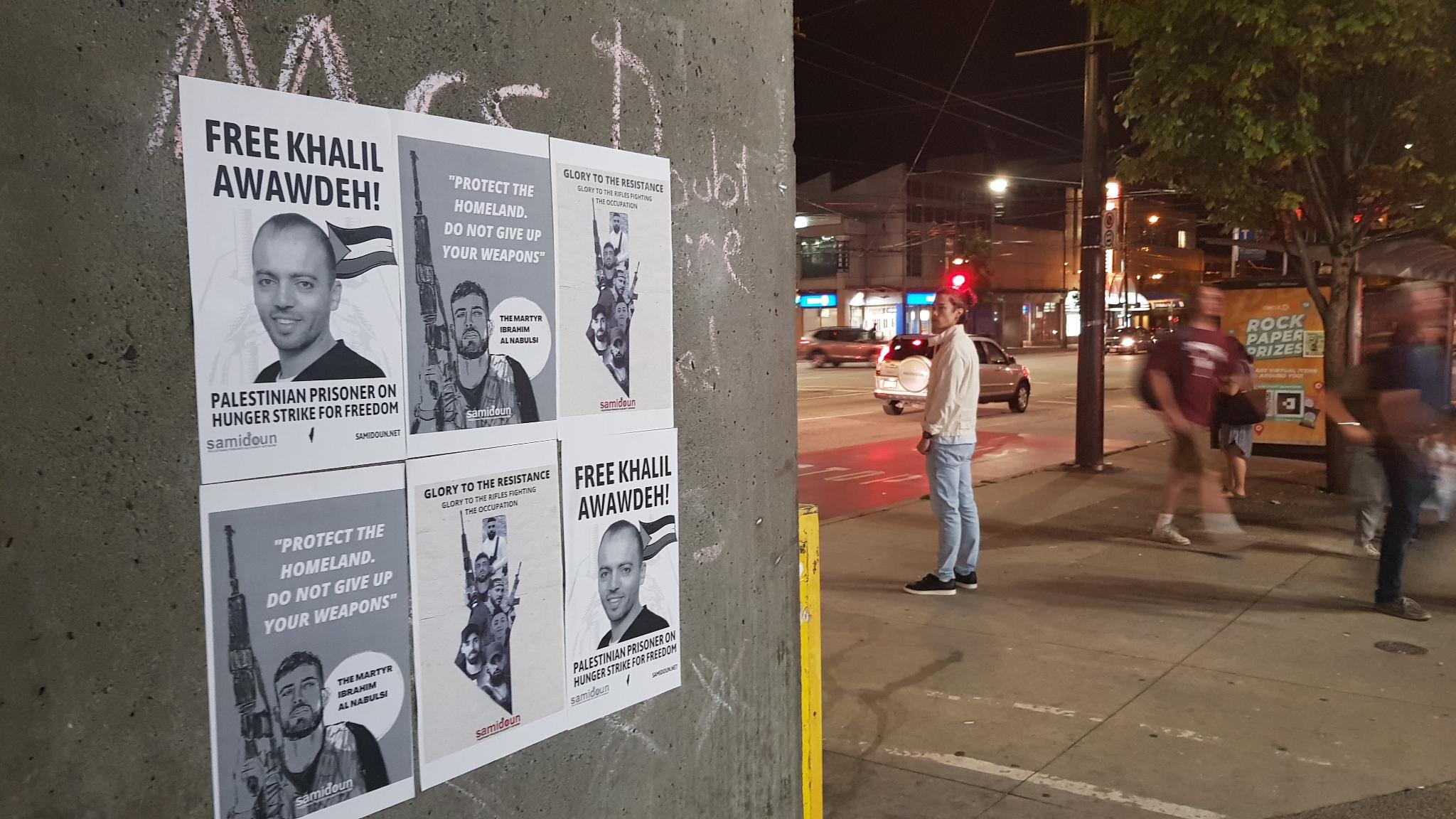 Organizers with Samidoun, Canada Palestine Association and BDS Vancouver put up posters and took social media photos in support of Awawdeh’s hunger strike, and Samidoun activists joined the demonstration organized on 11 August by the Palestinian Youth Movement. Participants carried signs and posters highlighting Awawdeh’s case and speakers focused on the struggle of the prisoners as a key part of the Palestinian resistance.