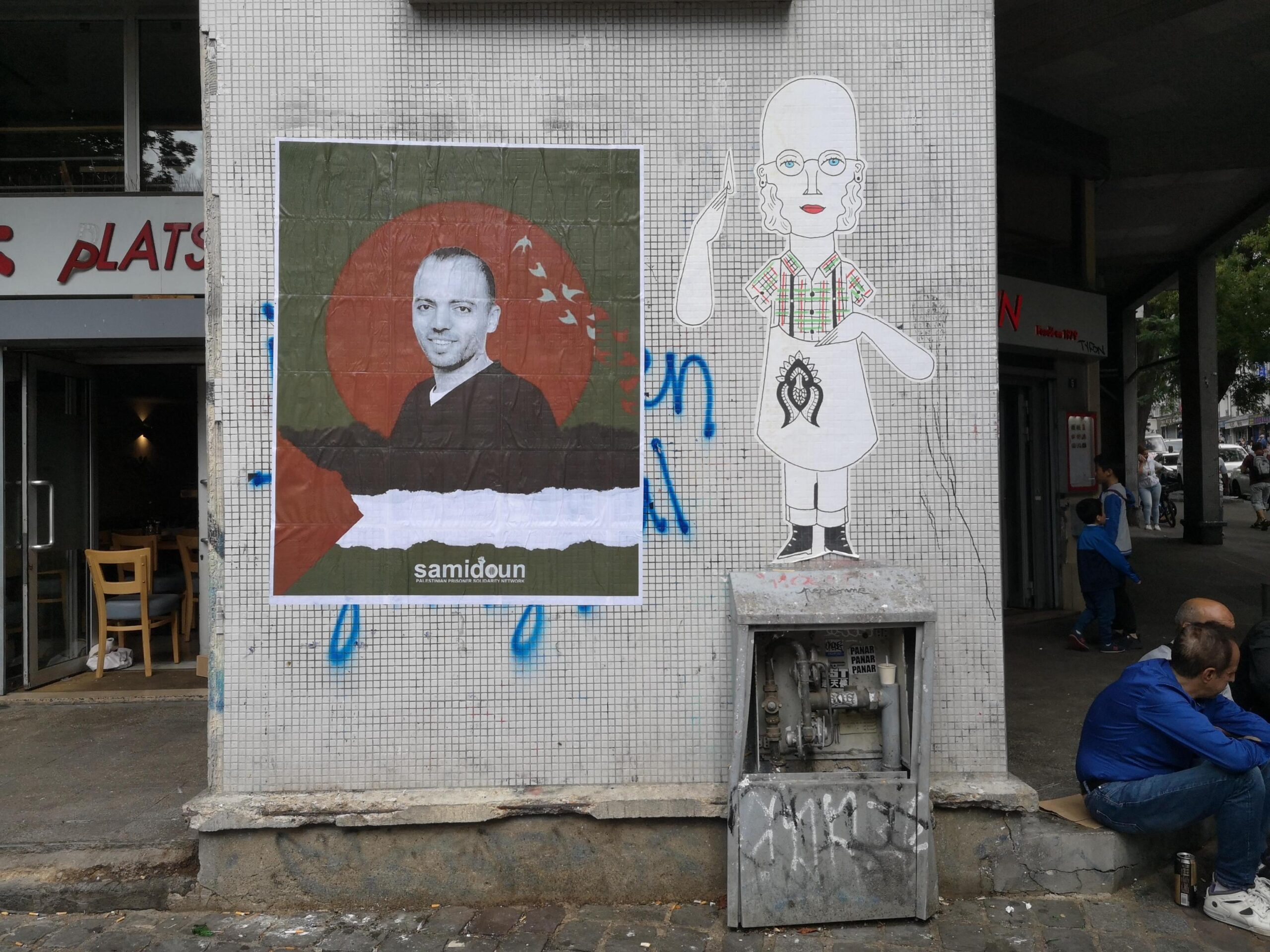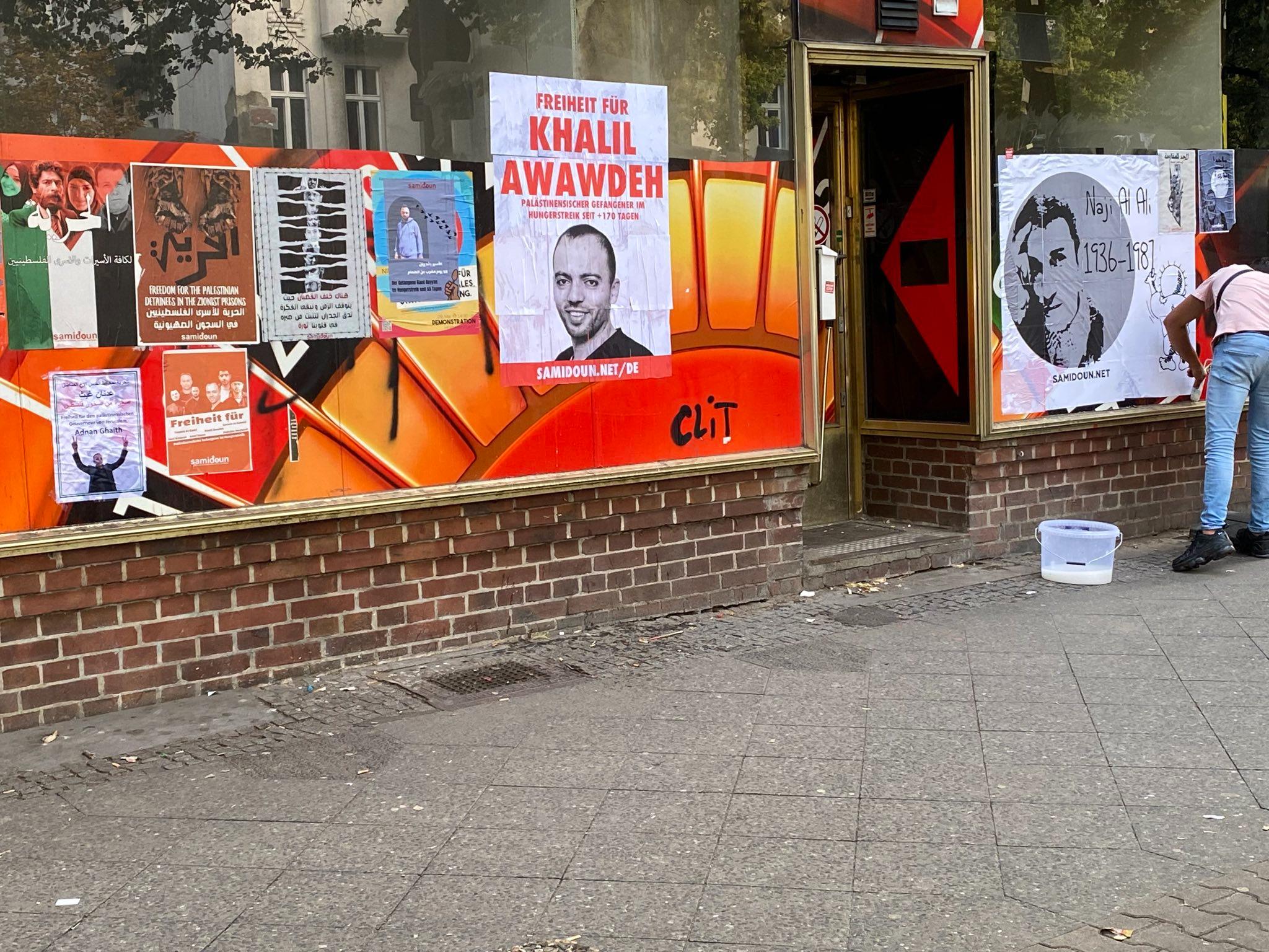Samidoun Deutschland launched a postering campaign throughout Berlin neighborhoods, highlighting the case of Khalil Awawdeh, including with a large mural posted on 21 August on Sonnenallee.