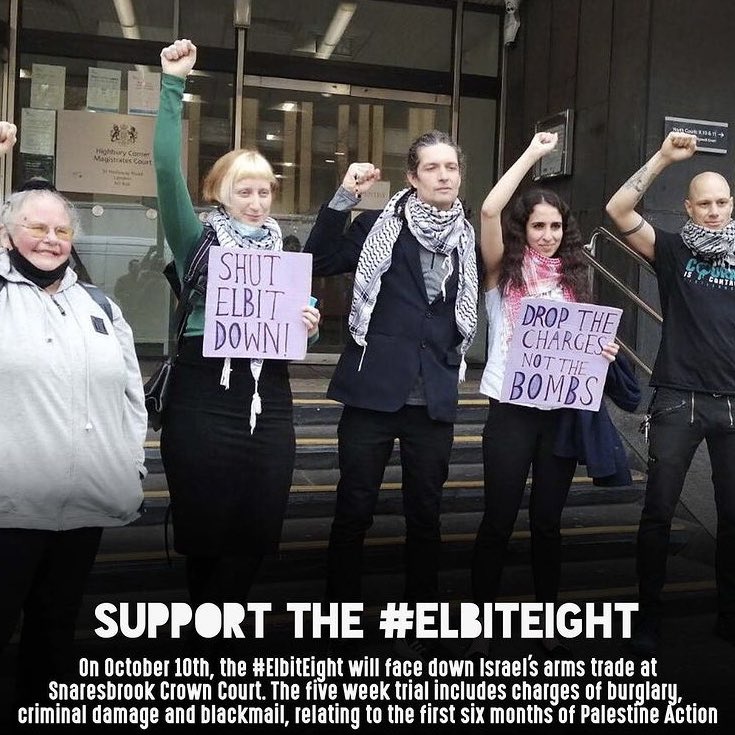 Ahead of their landmark trial, the Palestine Action Defence Committee, members of the #ElbitEight and their legal team welcome you to an online conference via Zoom.
