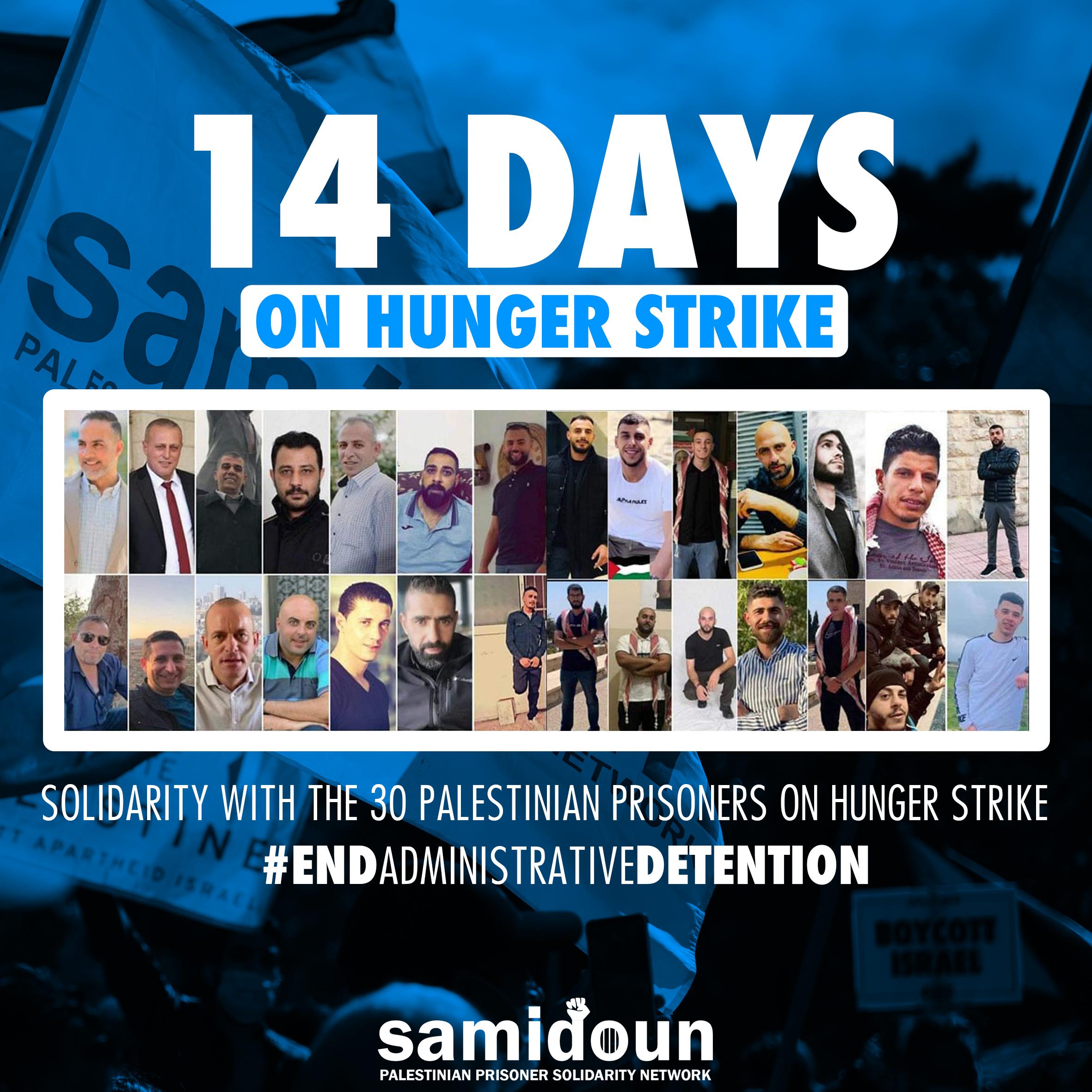 Samidoun Palestinian Prisoner Solidarity Network urges all supporters of Palestine and the prisoners’ struggle to join the campaign to end administrative detention and to support these valiant prisoners putting their bodies and lives on the line to resist and struggle for a liberated Palestine, through their hunger strike for freedom.