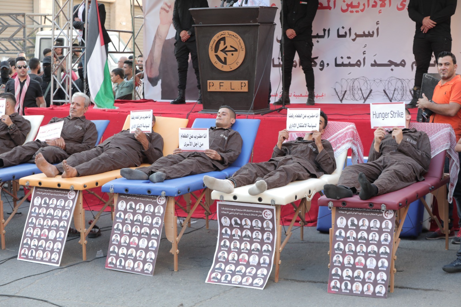 Palestinians in Gaza rallied in a large march on Saturday, 8 October in support of the prisoners on hunger strike, demanding their release in a rally organized by the Popular Front for the Liberation of Palestine.