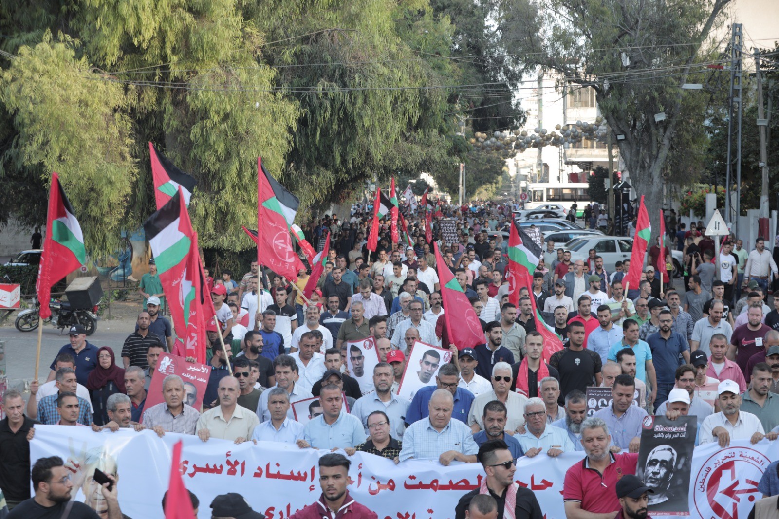 Palestinians in Gaza rallied in a large march on Saturday, 8 October in support of the prisoners on hunger strike, demanding their release in a rally organized by the Popular Front for the Liberation of Palestine.
