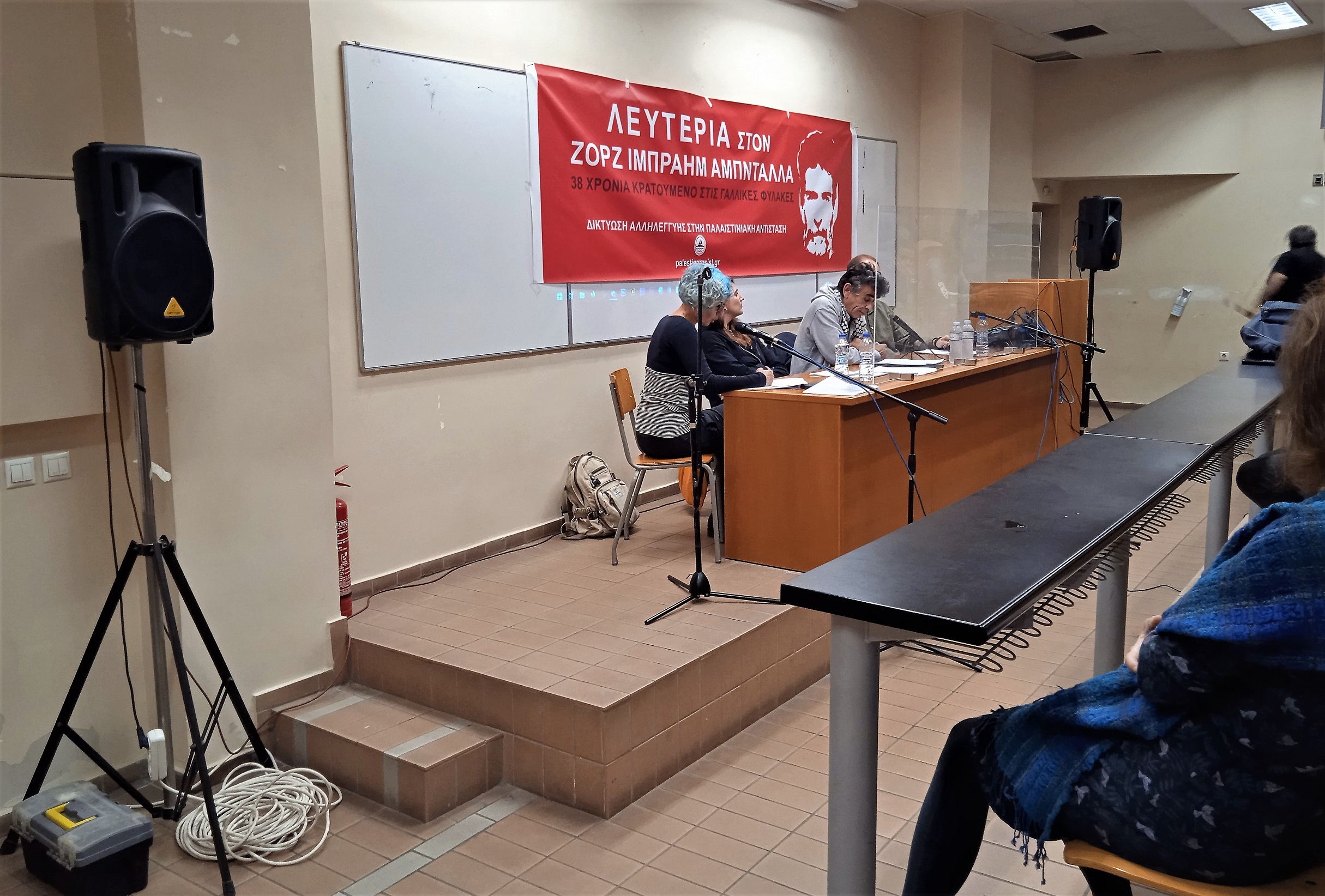 On October 19, the Network in Solidarity with the Palestinian Resistance organized a conference in the presence of sociologist Saïd Bouamama on the occasion of the Greek release of his book “L’Affaire Georges Ibrahim Abdallah” . Several speeches were also read or listened to on this occasion, in particular by the United Campaign for the Liberation of Georges Abdallah, by Georges Abdallah himself and from various political prisoners imprisoned in Greece.