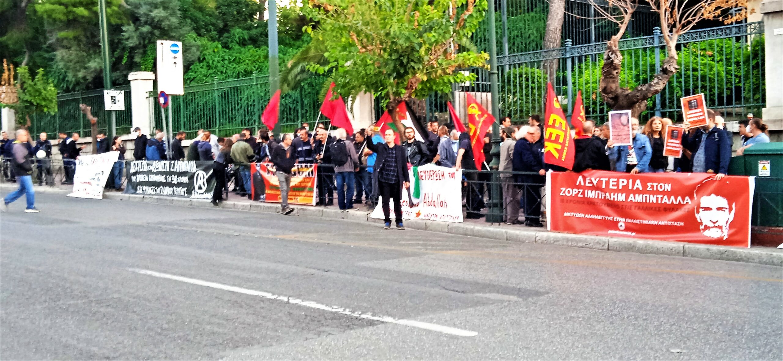 The next day, Friday October 20, a rally was organized in front of the French Embassy in Athens with the support of many organizations. This brought together over 100 people who chanted slogans in Greek and French to free Georges Abdallah, who has become a symbol of the anti-imperialist struggle in the world.