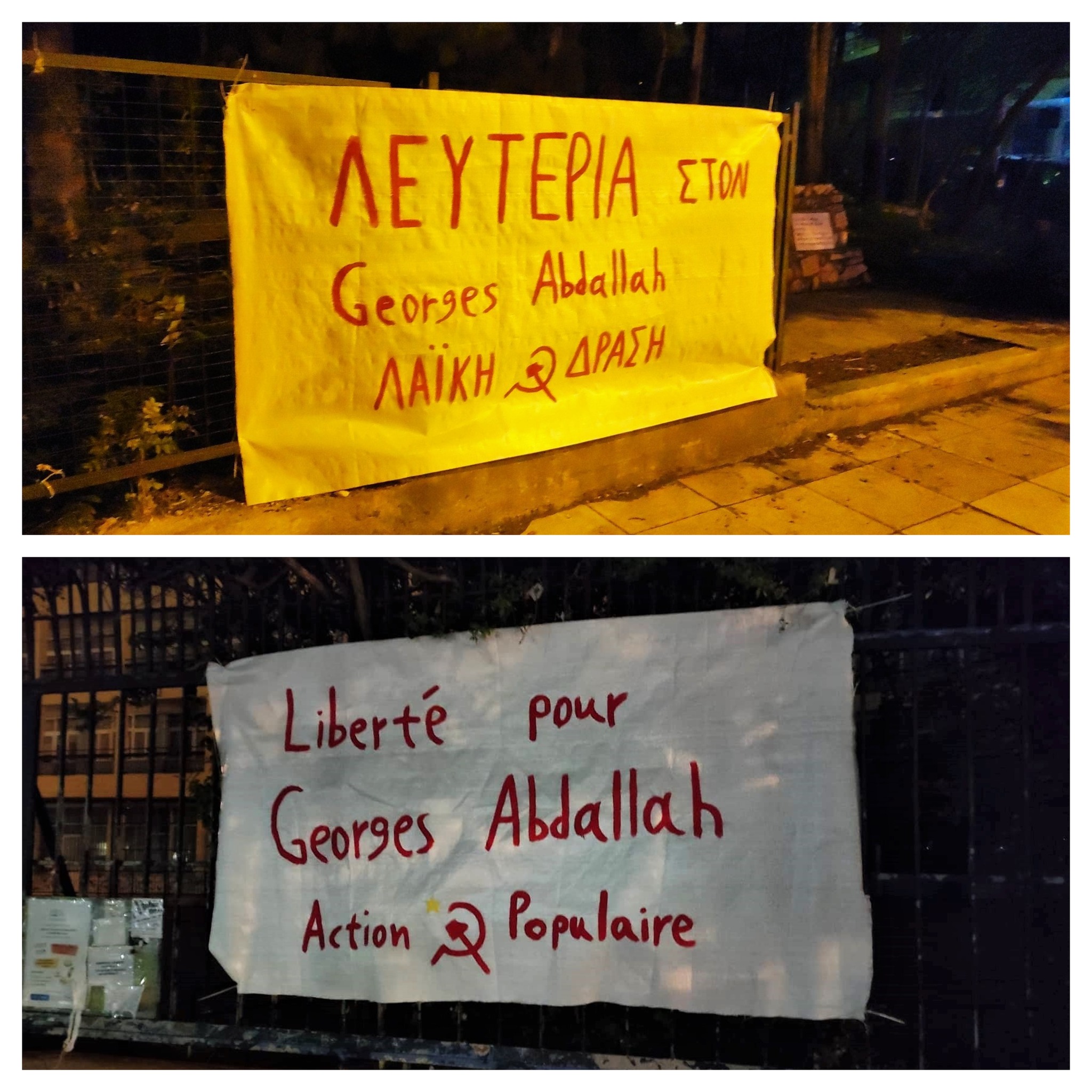 During the month of international mobilization for the release of Georges Abdallah, several initiatives were organized in Athens. On September 22, the organization Action Populaire unfurled several banners in support of the Lebanese communist in the Greek capital.