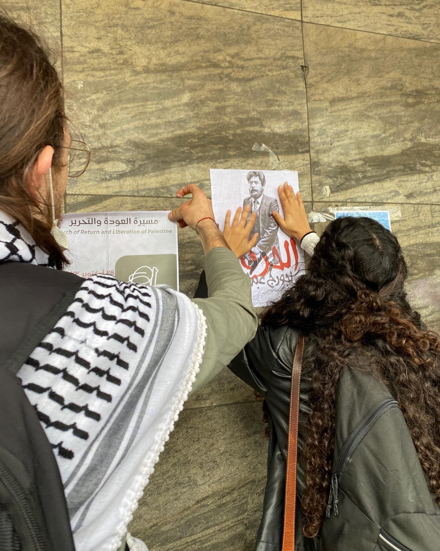 Samidoun Deutschland postered in the streets of Cologne to demand the immediate release of Georges Abdallah and to call for the March for the Return and Liberation of Palestine organized in Brussels on October 29th.
