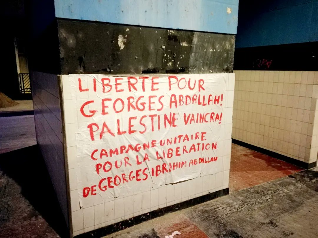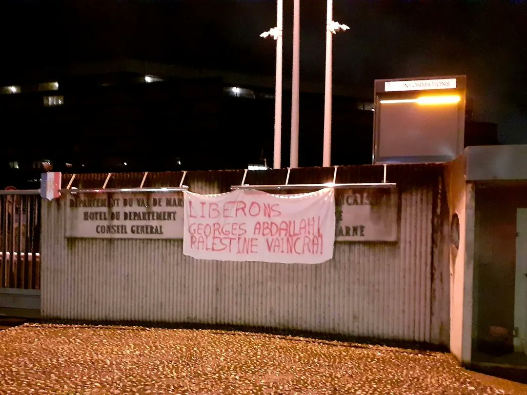 In Val-de-Marne, the Ligue de la Jeunesse Révolutionnaire reported that a banner had been posted demanding Abdallah’s freedom on the offices of the local council.