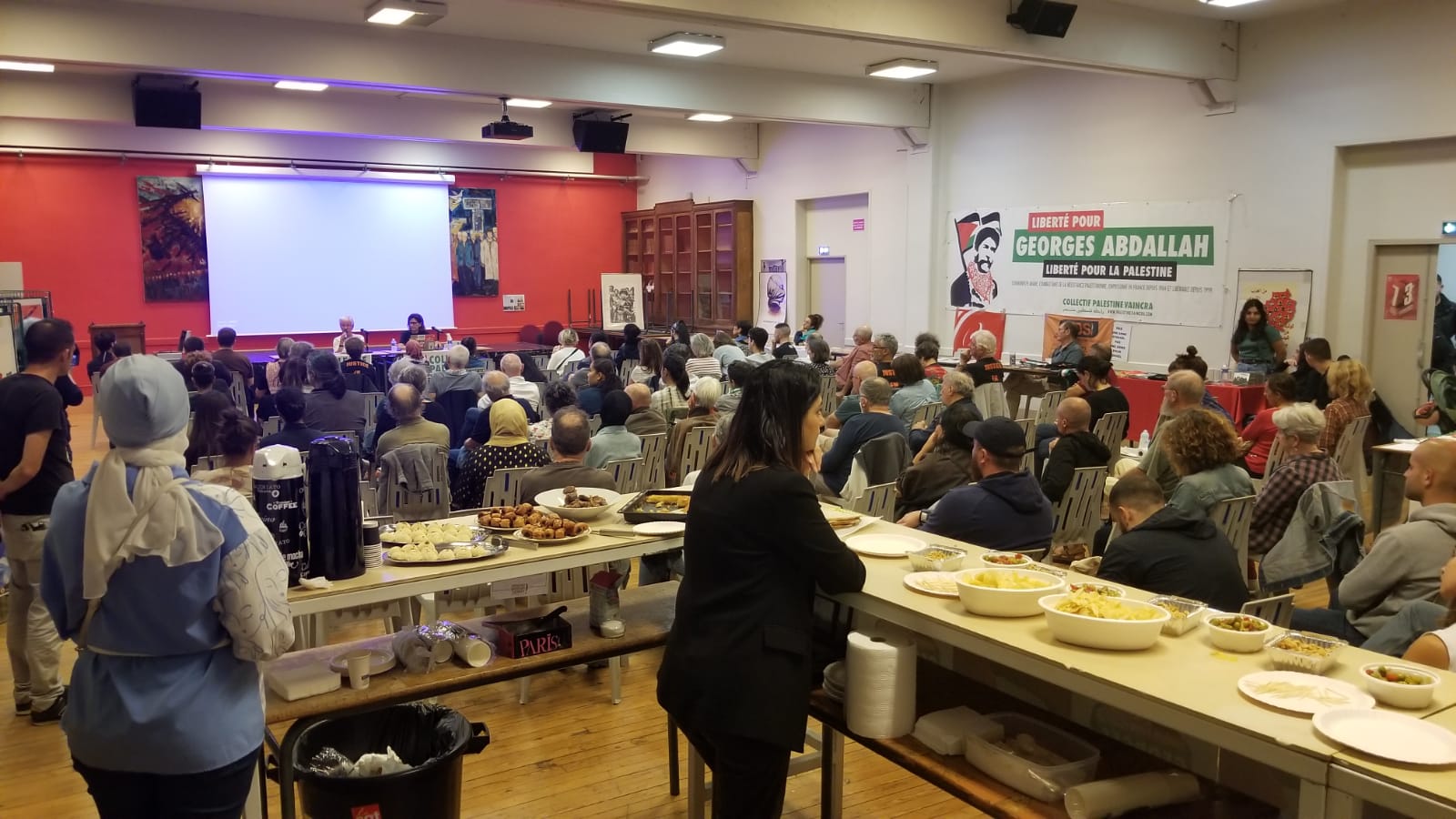 The Unitary Campaign for the Liberation of Georges Abdallah organized many initiatives during this month of October, in particular the organization of a Parisian bus for the Lannemezan demonstration. For the launch of the campaign, they organized a support meal on September 23 at the UL CGT trade union building in the 18th arrondissement, which brought together many people.